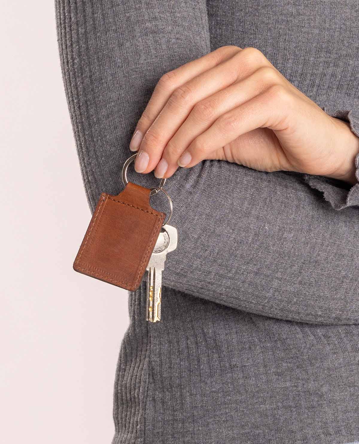 Our elegant brown keyring “Aika” keeps your keys close by and let’s you carry a small personal touch with you. It comes with an integrated pocket where you can keep a passport-sized photo, so you can always keep your loved ones close. Perfect for those who want to combine style and functionality.