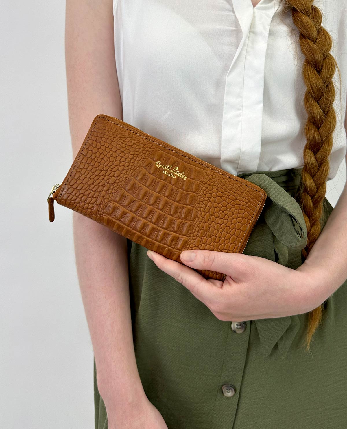 Are you looking for a classic women’s wallet? Then „Cara“ is just right for you! Its long shape provides “Cara” enough space for all your bills and cards and impresses with its trendy design including crocodile look. It is rounded off by its pop of color in the form of subtle gold applications. The durable cowhide leather makes “Cara” sturdy and yet gives it a pleasant feel.