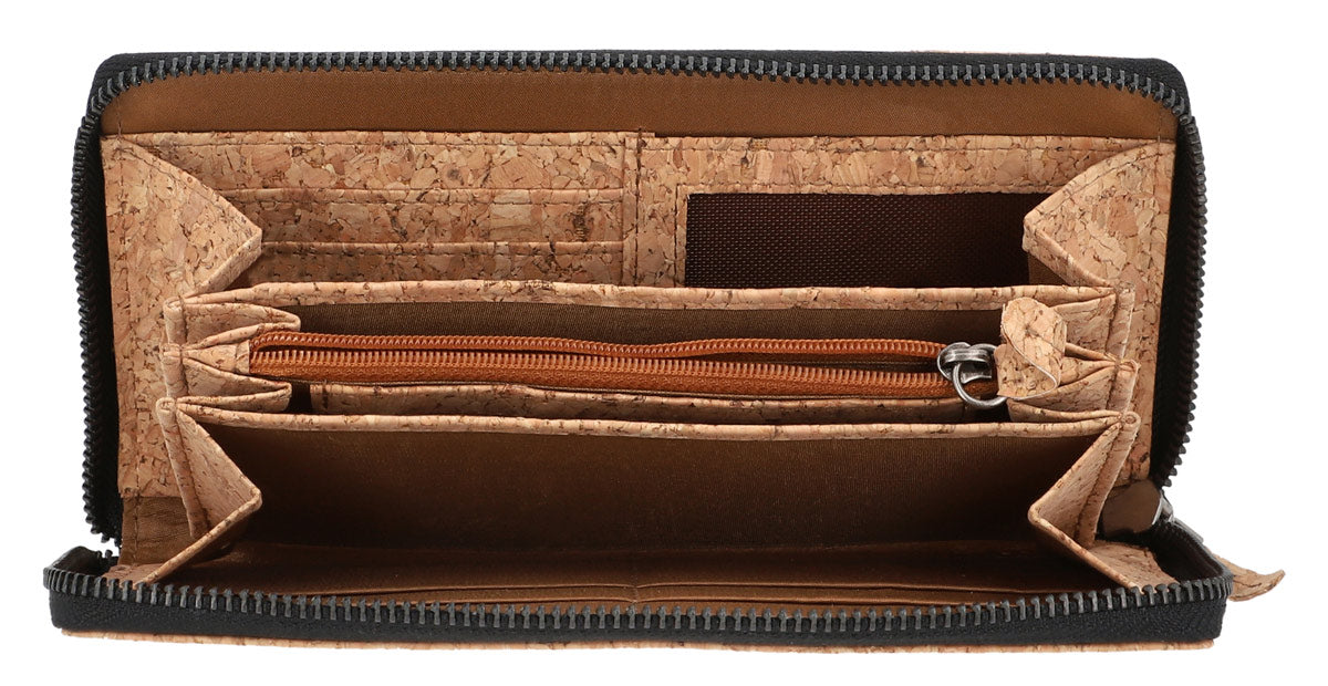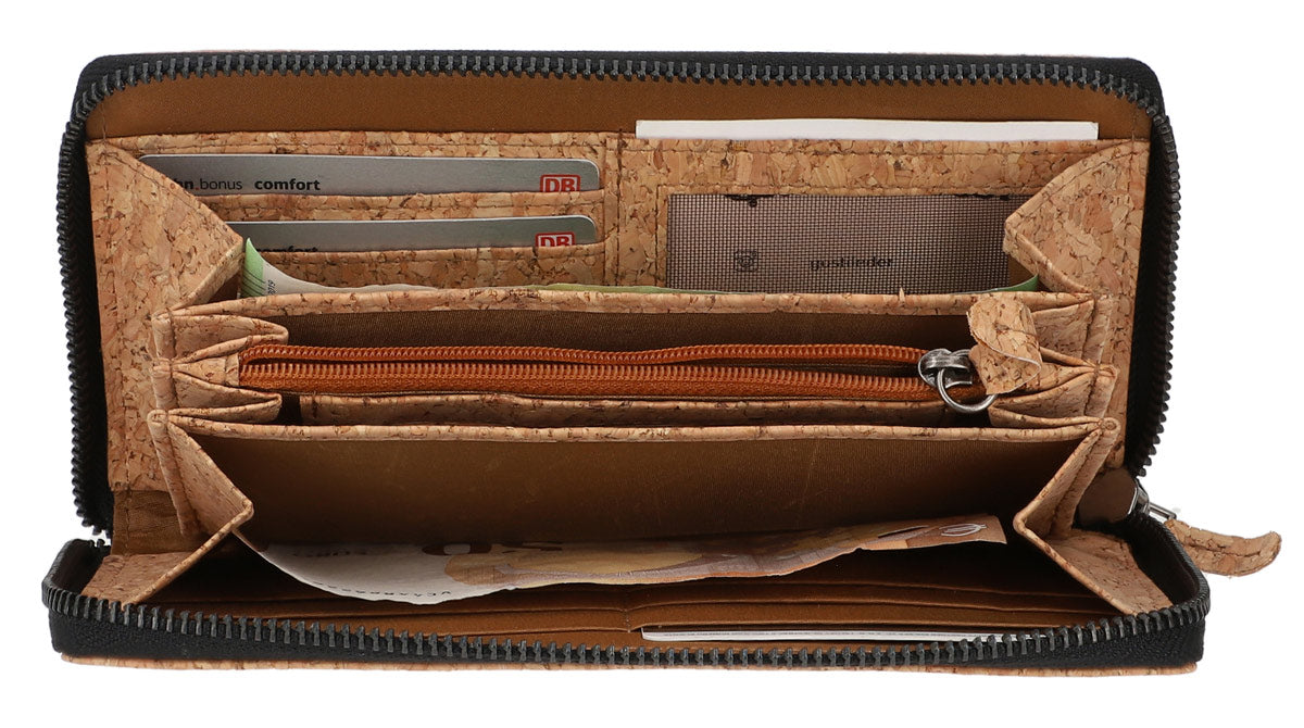With its elegant design and natural cork look, the wallet “Cara” is a real eye-catcher. The combination of functionality and aesthetics makes it the ideal companion for everyday life. Thanks to the variety of compartments and its practical size, it offers enough space for all your important items like banknotes, cards, and coins.