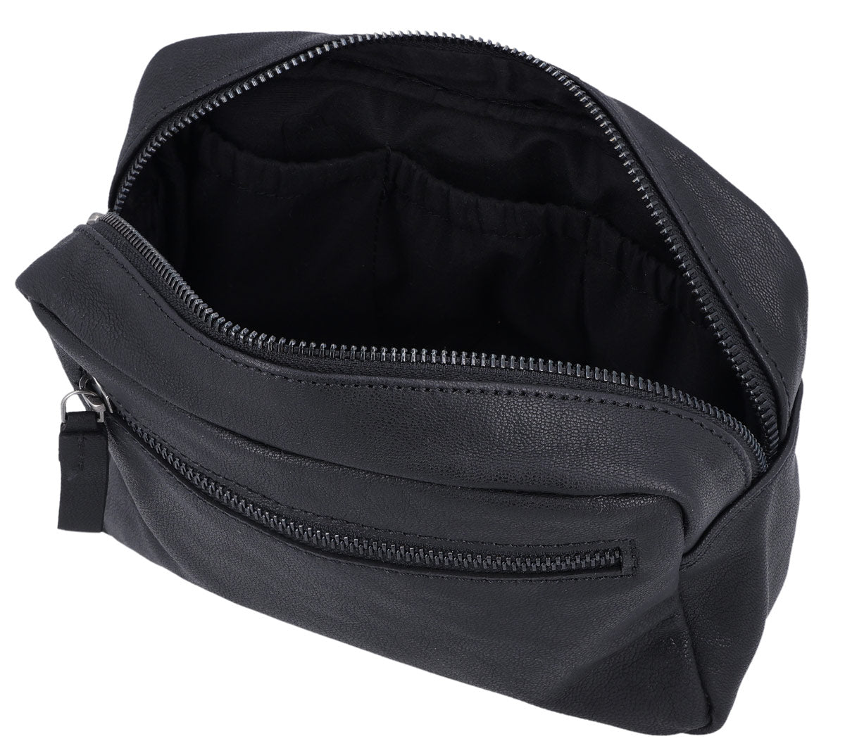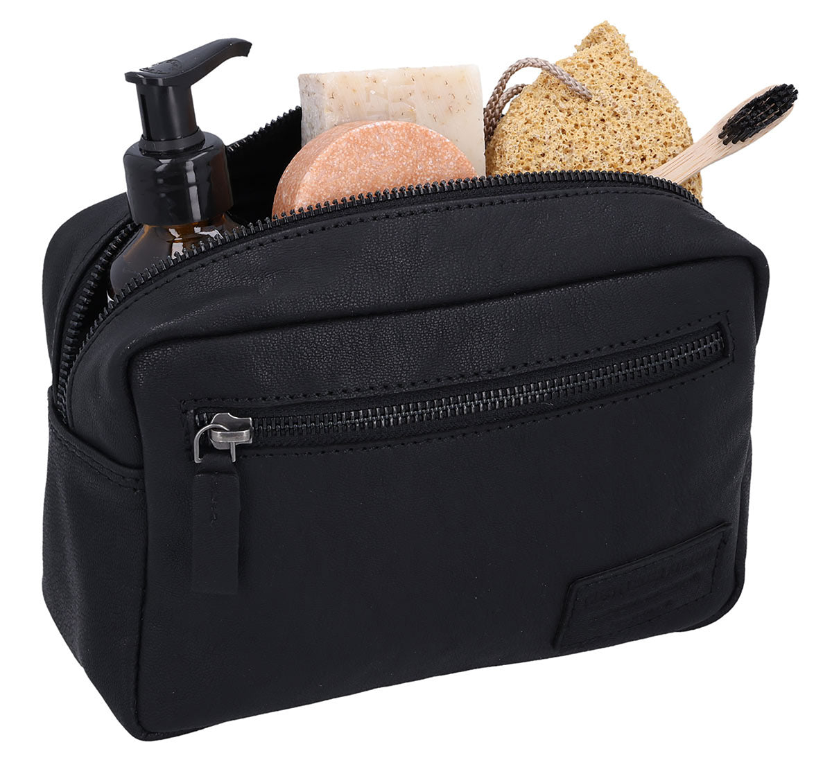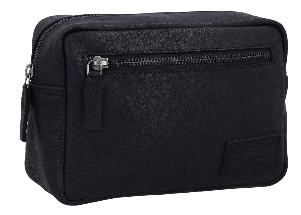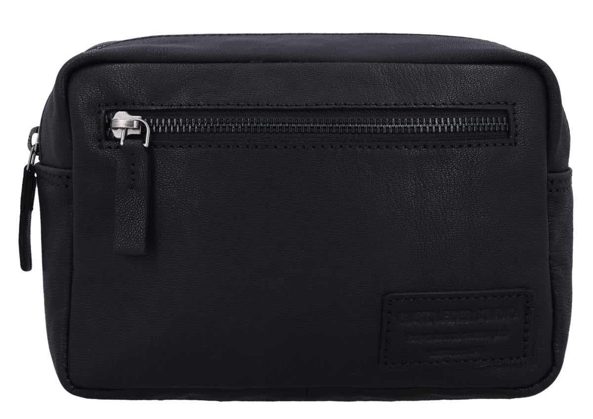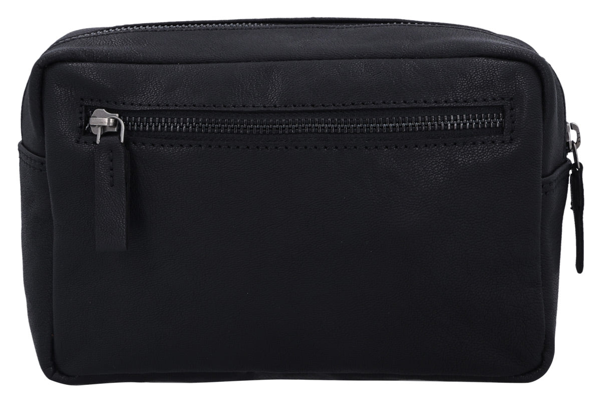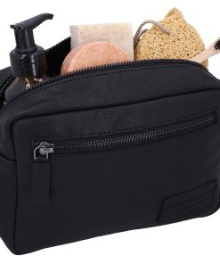 Our “Carmina” is an elegant and practical toiletry bag that keeps your beauty products safe and secure at home and on the go. Crafted from high-quality black leather, our washbag will impress you with its timeless design and durable construction. The spacious main compartment has plenty of room for your essentials, while the extra side pocket is perfect for smaller items like a razor or toothbrush. Designed for men and women, “Carmina” combines style and functionality in a compact design that fits easily into your luggage. Perfect for those who don’t want to compromise on elegance while travelling.