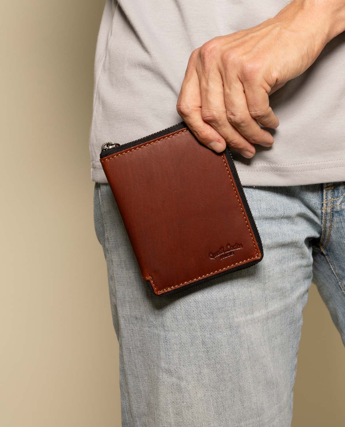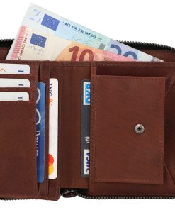 “Darian” is super organised; he has a large note pocket, a separate coin pocket secured with a press button, and three deeper slots. This high-quality tanned cowhide leather wallet will win you over with its compact size, stability, and soft feel. “Darian’s” design is completed by a sleek zip. So, you won’t lose anything when you’re on the go.