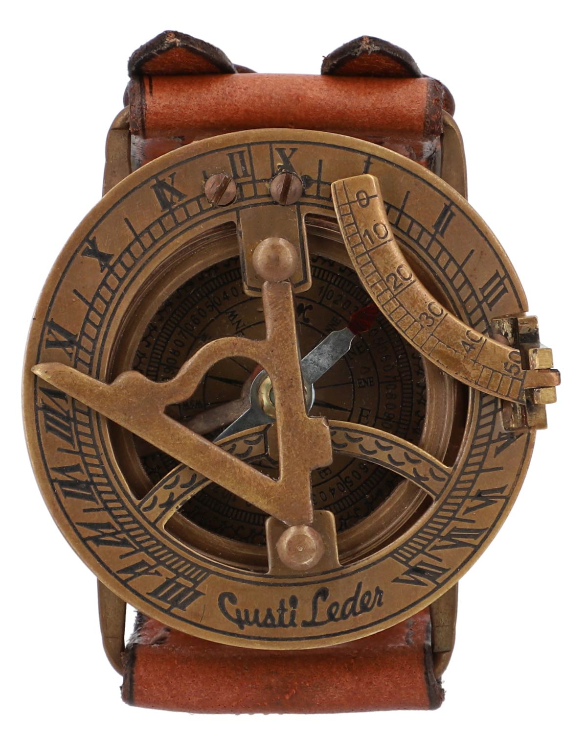 The sundial has an integrated compass, so you can use “Dennis” to tell the time, just like the sailors of yesteryear. Simply stand in the sun with your wristwatch facing straight up, find north using the built-in compass, then you can read the time. When you flip the pointer up, it casts a shadow on the hour ring, showing you the time. If the sun isn’t good because it’s midday and doesn’t cast a shadow, then you can adjust it using the clock. Flip open the angle display and tilt the hour ring so that the shadow falls back onto the hour ring. Even Jules Verne would be jealous of this gem!