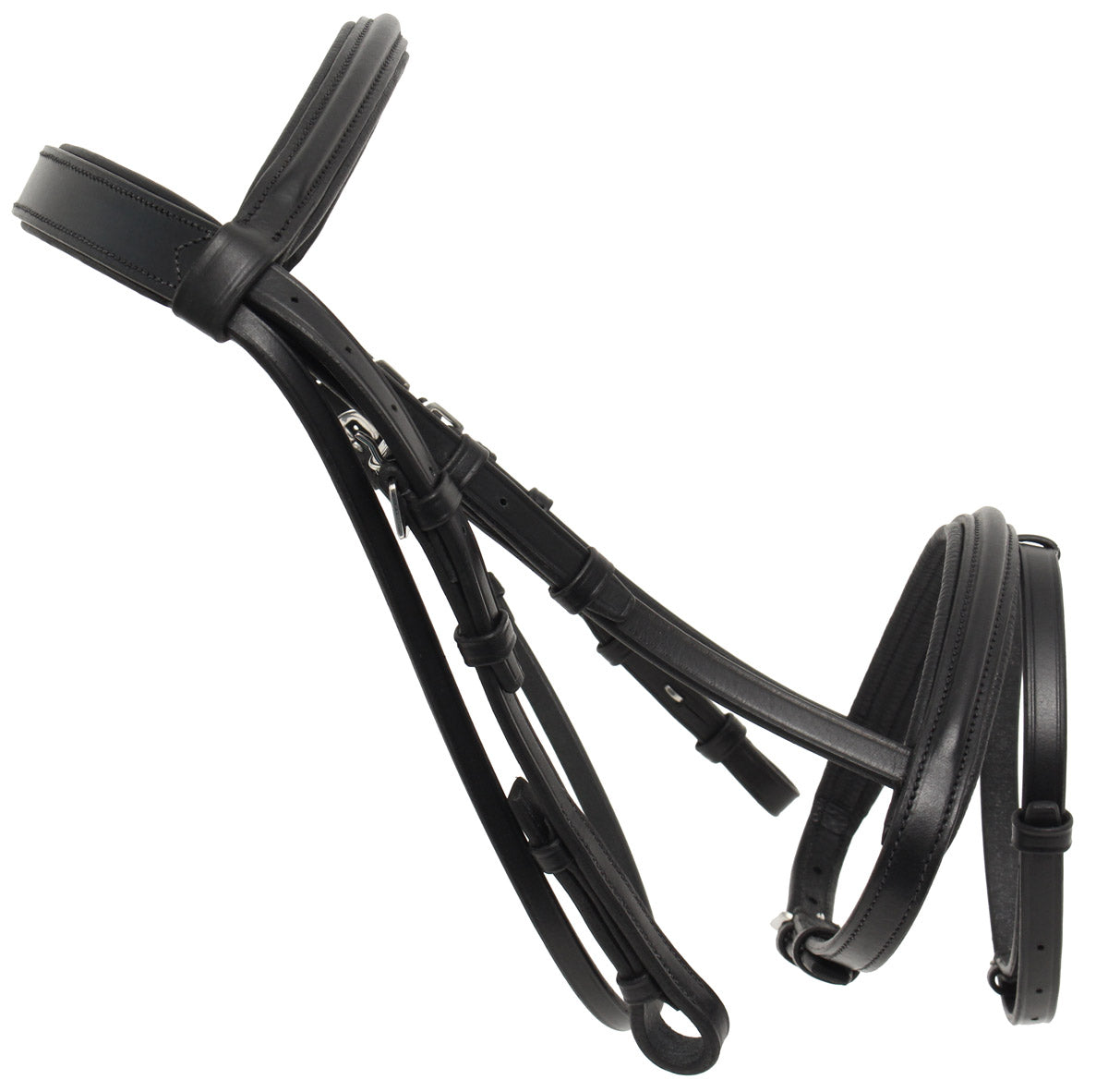 Our beautifully crafted “Galvin” black leather horse bridle cavesson is sure to withstand the test of time. It fits well and comfortably (or so our horses have told us) on your horse and looks elegant on all coat colours.