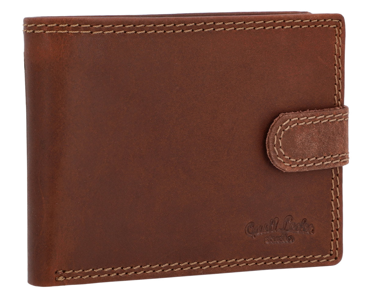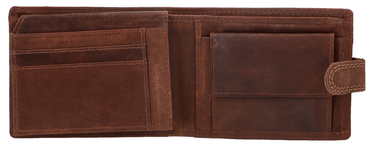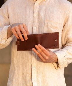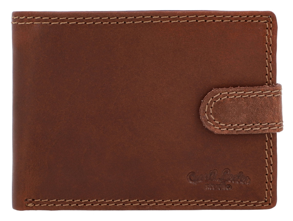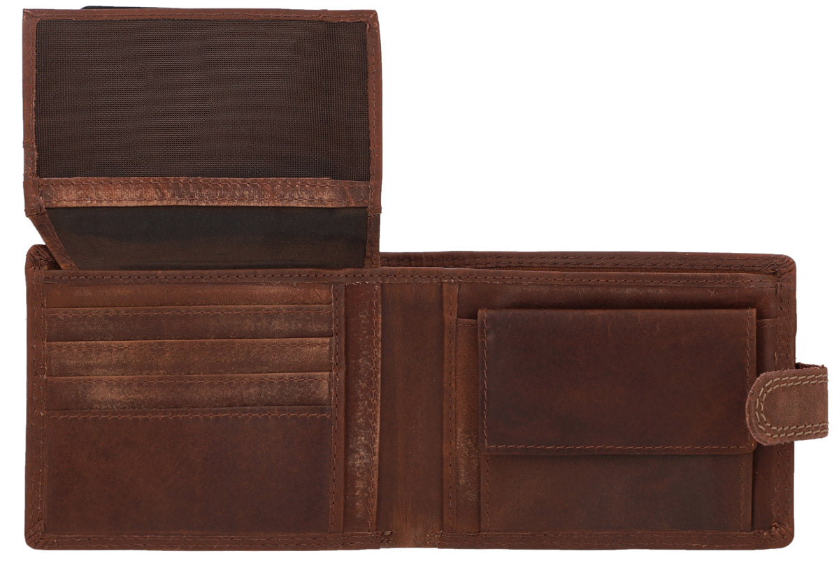 Inside, you have maximum comfort in functionality. The clever organization system helps you to quickly and easily have your most important cards, IDs, coins, and bills at hand. Where at first glance there doesn’t seem to be much space, there’s more than you think. Folding techniques and compartments allow you to store everything you can imagine. A viewing window with dimensions of 10.5 x 6.5 cm allows you, for example, to show your monthly ticket without having to take it out. The cowhide is of high quality and extremely durable. It offers you and your wallet great shape stability and promises that you will enjoy this great product for a long time. A snap fastener connected with a tab closes the wallet easily and conveniently.