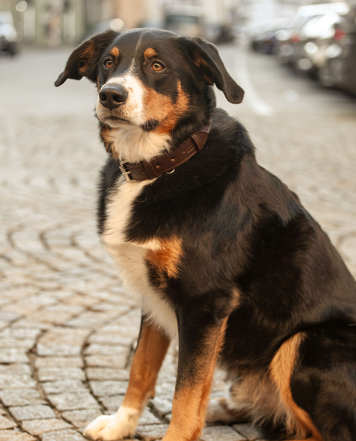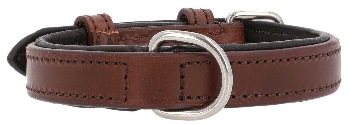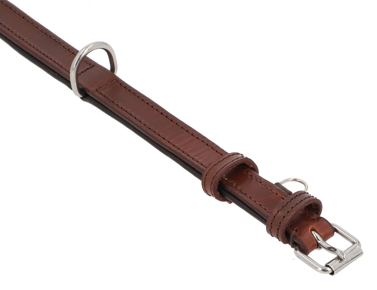 Discover our stylish high-quality brown leather dog collar “Jacky”. It’s the perfect accessory for your four-legged companion! Its elegant gold buckles make a fashion statement and offer lasting quality and secure fit. The soft leather rests comfortably around your dog’s neck, providing maximum comfort. Available in sizes S to XL, “Jacky” suits dogs of all sizes. Use it on your daily walks or special occasions, this dog collar combines style and function for both dog and owner. Ready for your next adventure together?