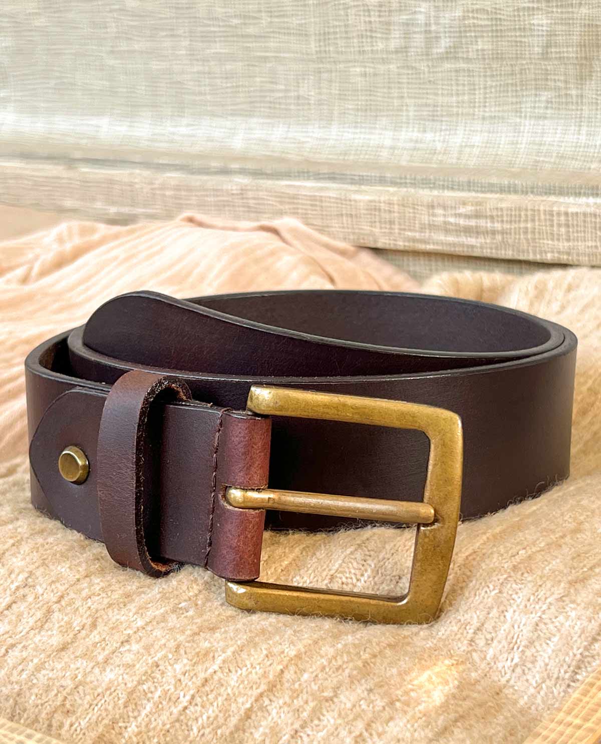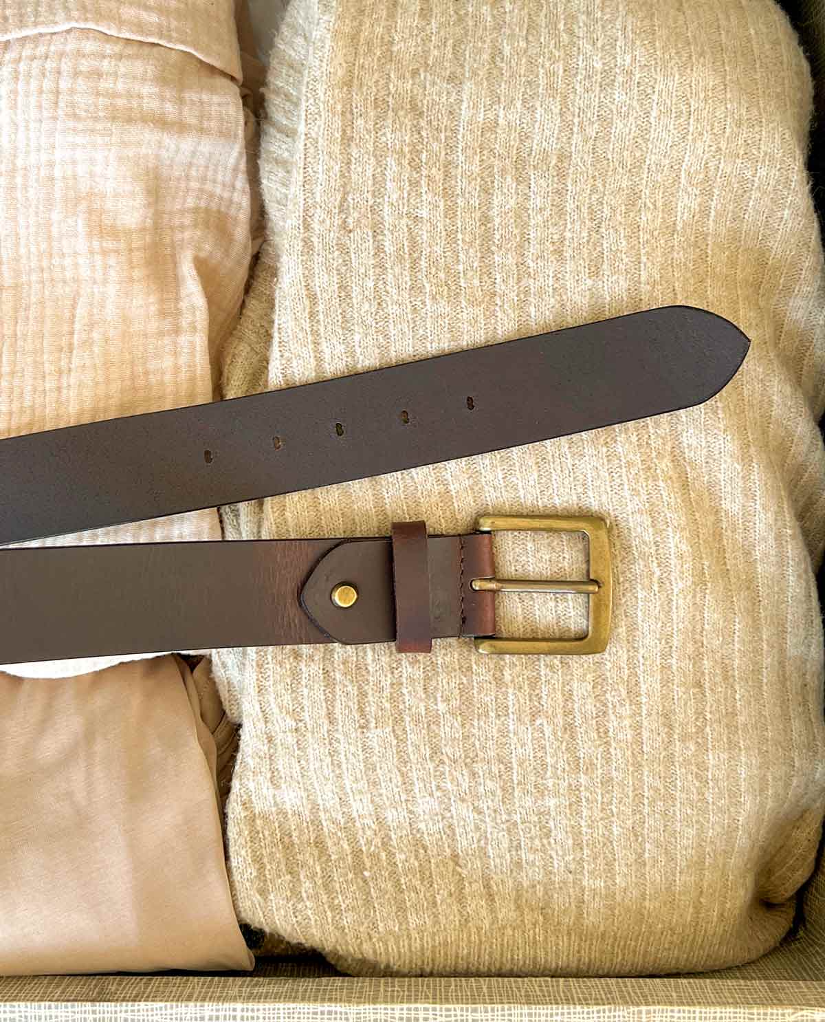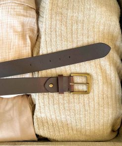 Are you looking for a slim, simple leather belt that subtly and functionally enhances your outfit? Say hello to “Jori”! Practical and comfortable, whether with your everyday jeans or as a trouser belt. Simply the absolute classic among vintage belts. Available in various designs and with a matching classic golden buckle, it will perfectly support you in everyday life.
