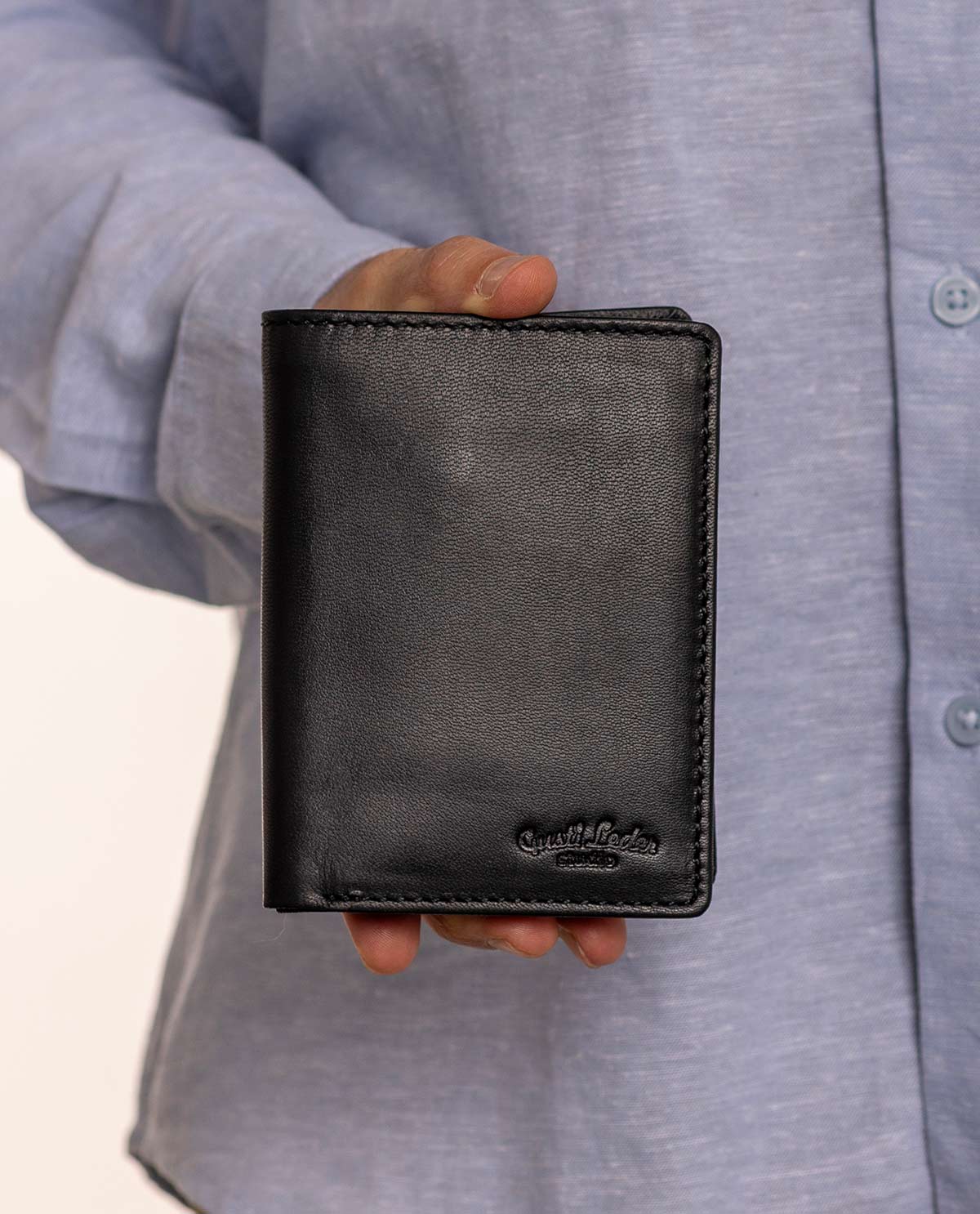 This practical portrait leather wallet is sure to win you over. “Macon” won’t just impress you with its timeless design, which can look elegant or rustic depending on the colour and finish you choose, but with its handiness and security too! This robust high-quality leather wallet is extra sturdy and strong.