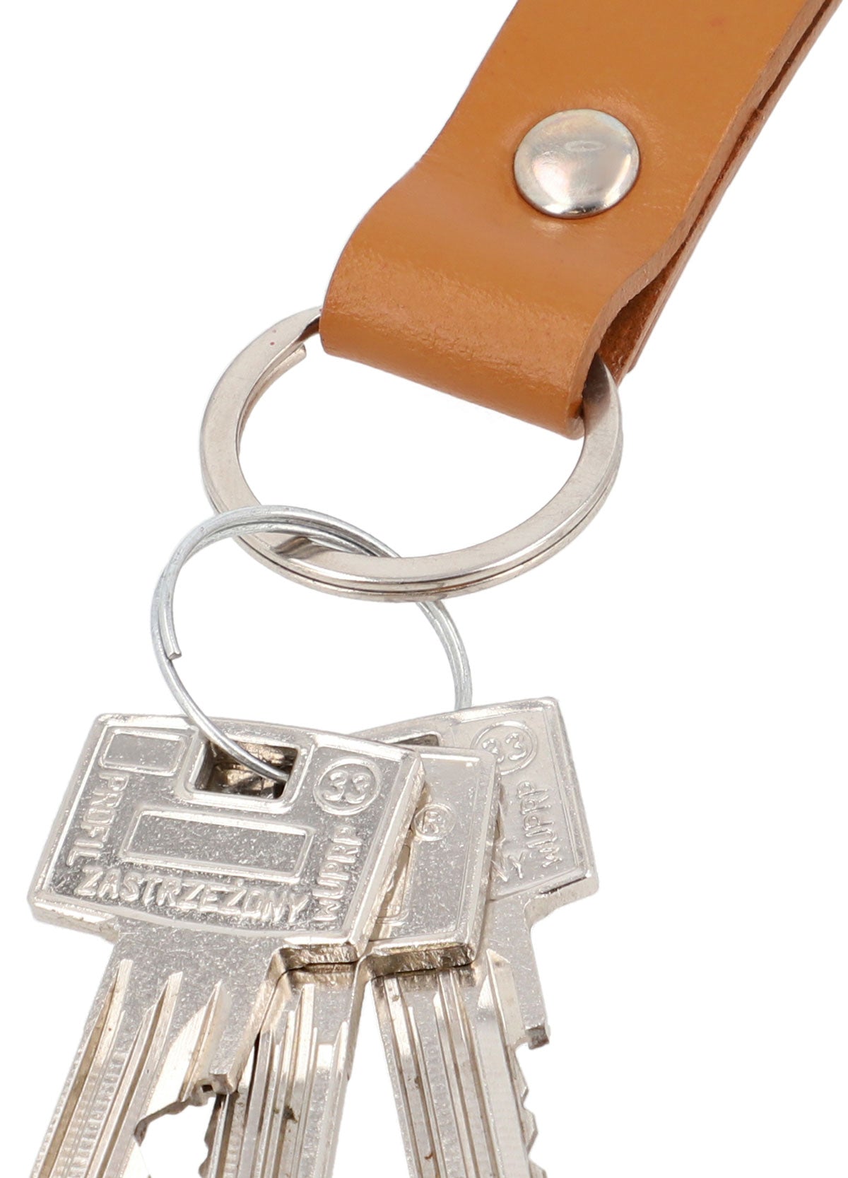Our keychain “Shelton” is the ideal gift for your favorite people or even for yourself if you want to pamper yourself. Made from 100% genuine leather, the keychain offers not only high durability but also a pleasant softness. It shines in the trendy vintage look and perfectly matches your style. Whether for apartment, garden, or work keys – with “Shelton” all keys look great and are readily accessible in your handbag or backpack.