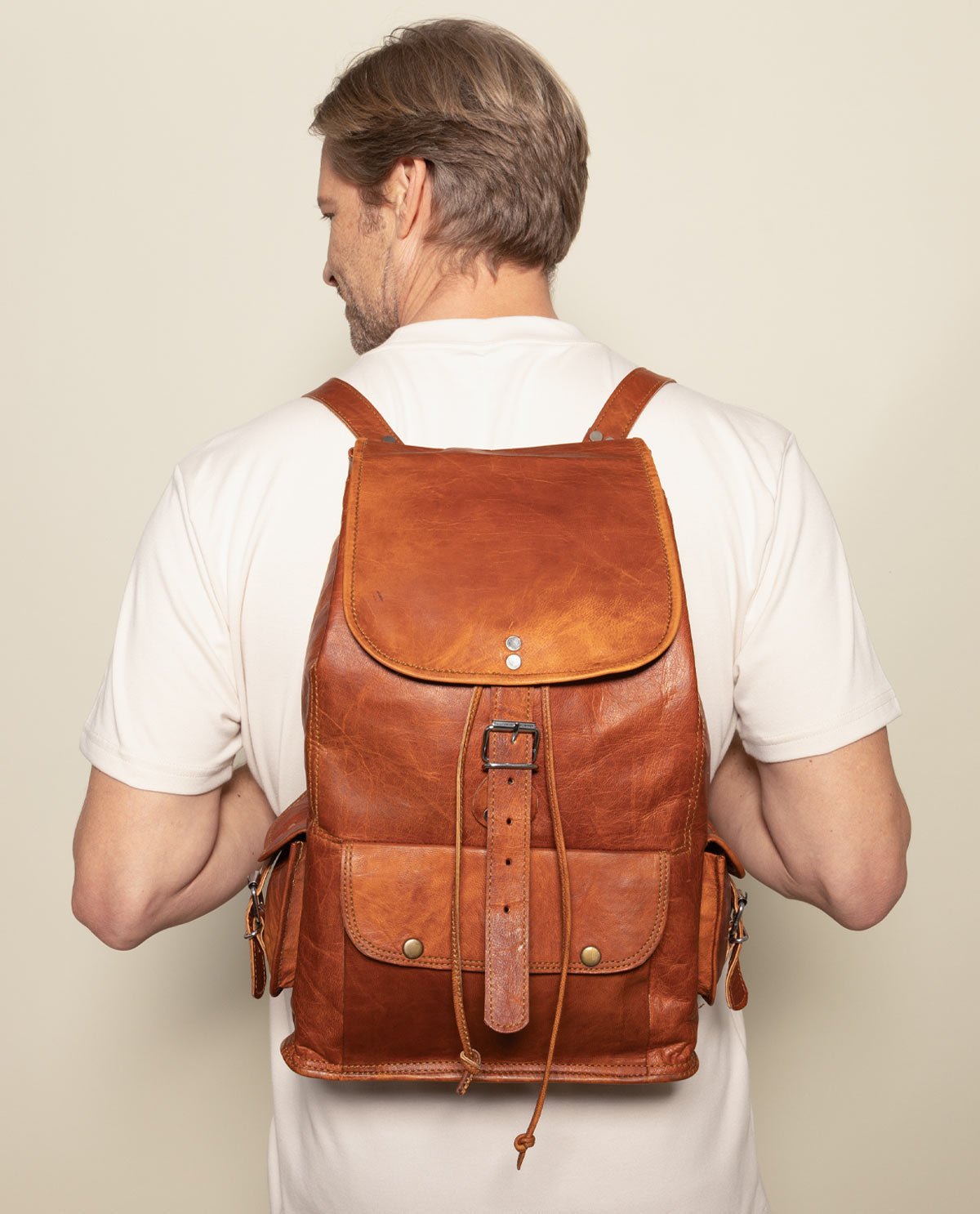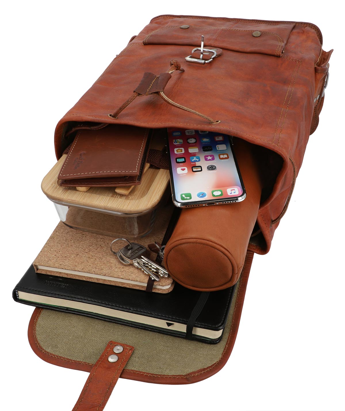 Our classic backpack “Bobbie 15”” is made of striking brown vegetable-tanned leather. Take him on a spontaneous weekend trip, to uni or the office, or for a casual stroll in the city—“Bobbie” always looks good. Our charismatic 15-inch backpack is a MUST-HAVE for those who love mixing casual-sporty and classic-retro styles.