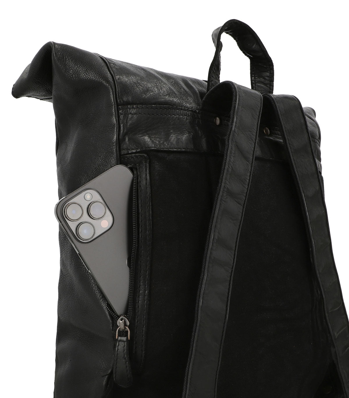 “Henning” is a medium-sized roll-top backpack made of durable cowhide leather, perfectly designed to deliver in the hustle and bustle of the city or the confines of the subway during rush hour. With its well-thought-out division, it offers you ample space to easily store your A4 documents, 15″ notebook, a handful of books, and a large water bottle in the spacious main compartment, while an additional slip pocket and zippered inner compartment help you organize your belongings systematically, ensuring everything has its proper place.