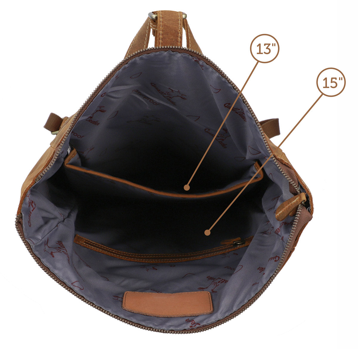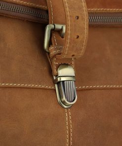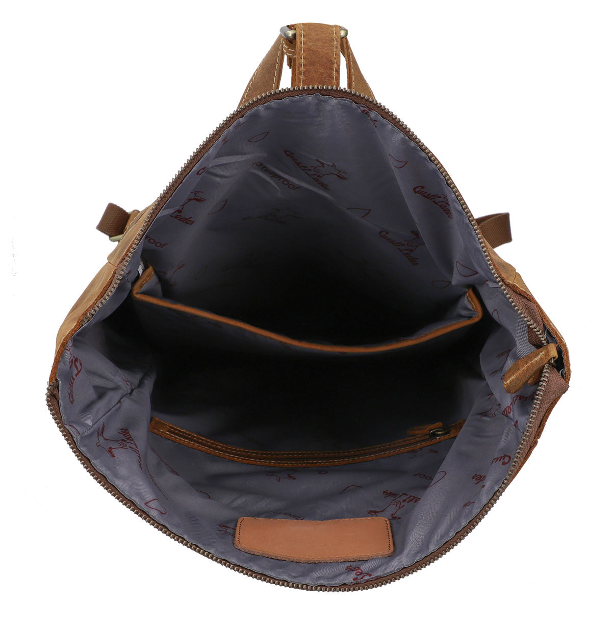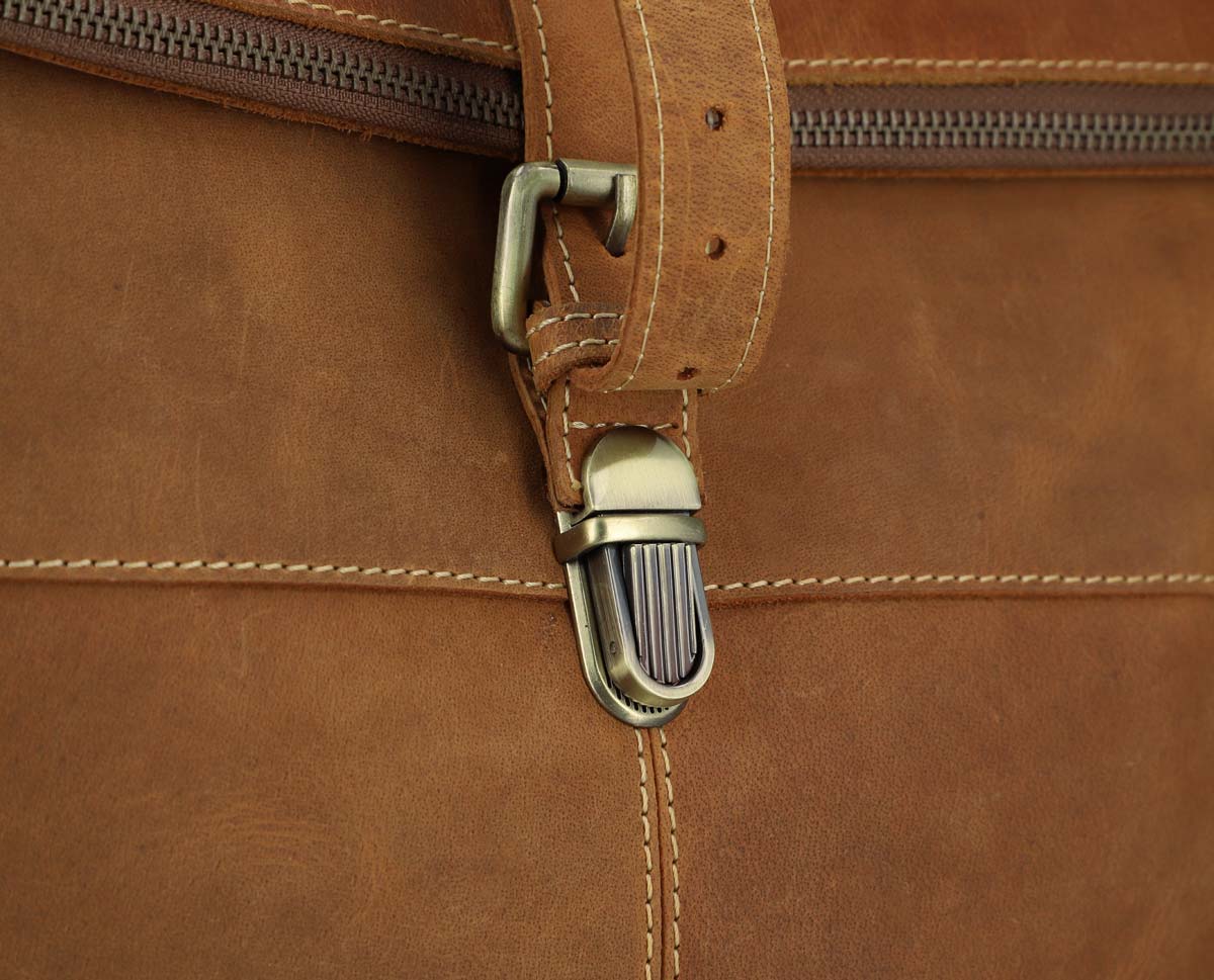 “Henning” is a medium-sized roll top backpack made of sturdy, camel brown goatskin leather that’ll help you navigate the big city maze or narrow metro lines with ease thanks to its slim cut. Its well-thought-out layout has more than enough space in the large main compartment for your A4 folders, 15” notebook, books and a large water bottle, there’s an additional zip pocket inside so that you can organise your things and find them with ease. The bright inner fabric is made of water-resistant polycotton which protects your backpack from moisture and marks, so you don’t need to worry if you have any small mishaps. The zipped pocket on the side has plenty of space for all of your belongings and the padded back section and the inner side of the wide shoulder straps are covered in brown canvas to offer you extra comfort.