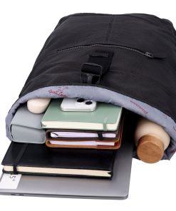This backpack won’t just win you over with its stylish looks, you’ll love how much space there is inside too. You can easily fit your A4 folders, 15-inch notebook, books, and a big water bottle inside his spacious inner compartments. The closure on the main compartment is as simple as it is practical, it protects your belongings from moisture and dust. The interior is lined with black canvas, which is also used for the padded back section and the underside of the adjustable shoulder straps—maximising your comfort. The external zipped pocket has plenty of space for the things you need to grab quickly: Tissues, chewing gum, disinfectant, and more.