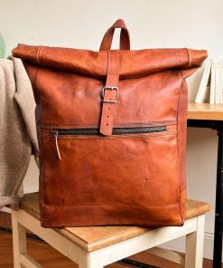 Our “Mattis” roll top backpack is the perfect companion, no matter if you’re going to school, uni, or work. He’ll win you over with his flexibility, comfort, and space. This sturdy, classic daypack made of black buffalo leather stands out from the crowd with its trendy roll top—a look that you just can’t ignore at the moment.