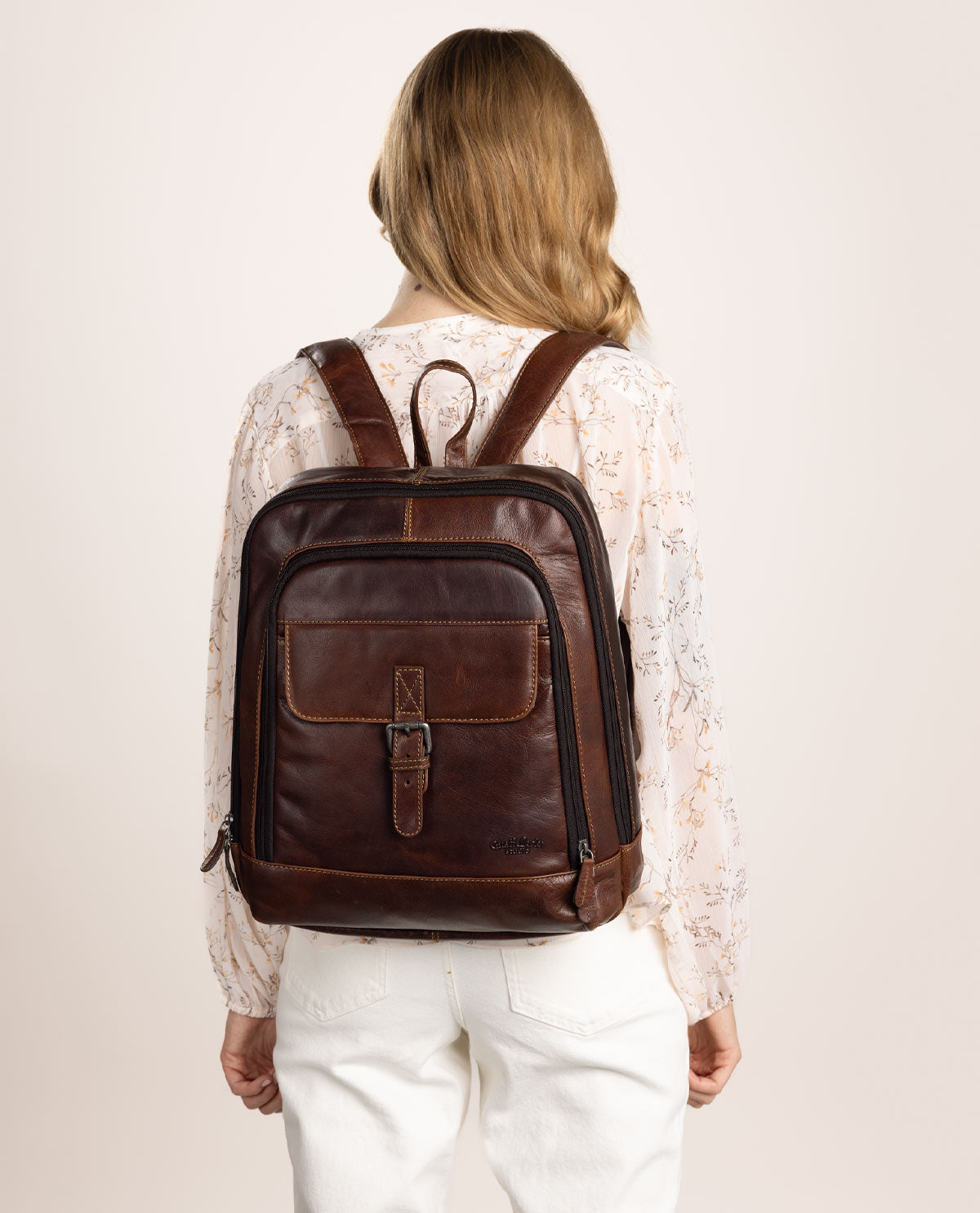 No matter if you’re hitting the gym, travelling around the world, heading to the office, or just chilling every day, “Niki” will have your back! This robust buffalo leather backpack has a water-resistant lining and can take on any challenge. She’s a practical yet chic accessory that’s helping us redefine the modern leather backpack. There are 5 compartments of varying sizes inside, so you can take your hiking boots, water bottle, A4 documents and 15.6-inch laptop with you when you’re on the go. Her pockets make sure your belongings stay safe and secure. “Niki” has 2 extra zipped pockets where you can keep your valuables. The wide, adjustable straps on this bag mean that it’s super comfortable to wear. We haven’t just thought about functionality at Gusti Leather, so “Niki” comes in a stylish vintage design too!