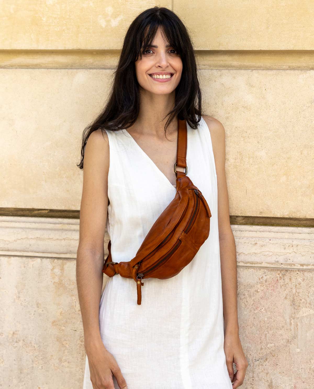 Are you looking for a cool belt bag that you can wear during festival season? Something handy where you can keep snacks or your essentials? Then “Acton” is exactly what you’ve been looking for! This cool vintage bag is made from sturdy cowhide leather and always looks good. There’s plenty of space in the large main compartment for your belongings. You’ll find two zipped pockets on the front of the bag where you can keep your essentials. Bring on Coachella! But that’s not all… This spacious belt bag can be used all year round. Keep your wallet, keys, and phone safe at concerts during the winter months. You can enjoy the music without worrying about your things.