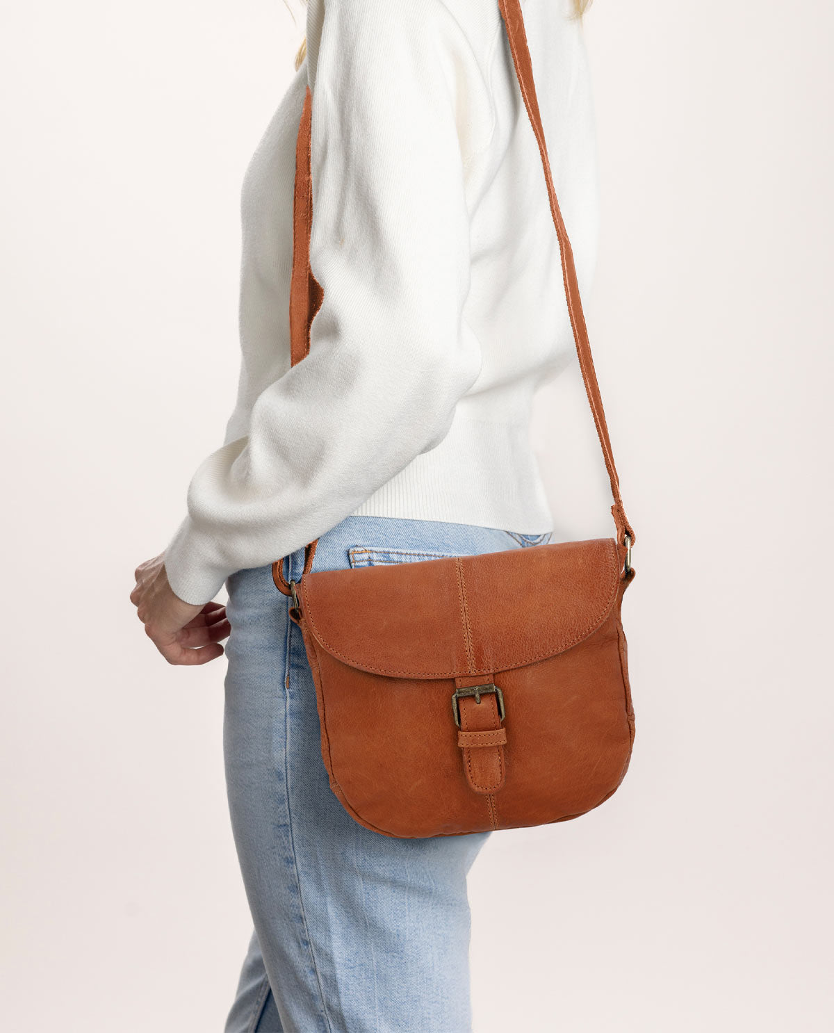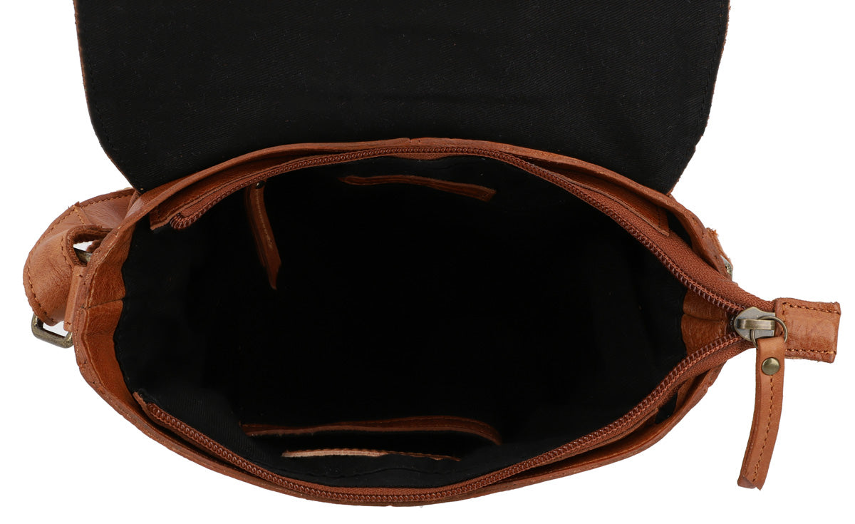 Our striking bag “Candice” has plenty of space for more than just your essentials. There’s space for your wallet, phone, keys, as well as an eBook or paperback. “Candice” has a zipped pocket on the back where you can keep your valuables safe from sticky fingers. The magnetic flap on the front of the bag hides a zip that prevents your belongings from getting lost when you’re on the move. This chic handbag is made from high-quality cowhide leather, making her super soft yet super sturdy. She can take on anything you throw at her. “Candice” is a down-to-earth chic vintage shoulder bag and the perfect companion when you’re exploring the city, grabbing coffee with your friends, or rambling through the countryside.