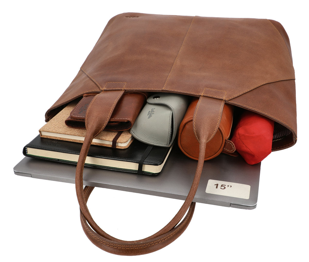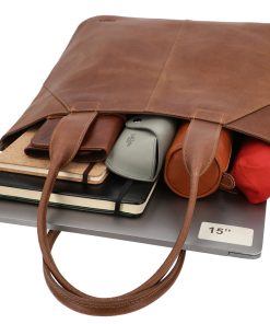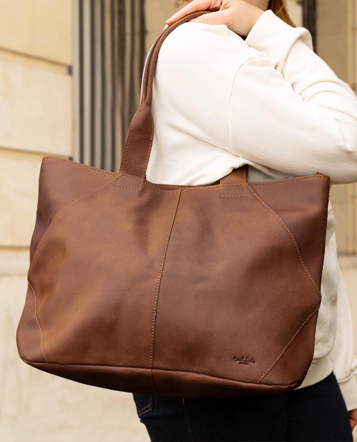 Spacious. Stunning. Versatile. That’s our “Cecilia”. This stunning high-quality shoulder bag is made of brown cowhide leather and is perfect for shopping, strolling through the city, and at the office and university. She’ll wow you with her simple elegance, she’s discreet and sleek yet stylish and functional.