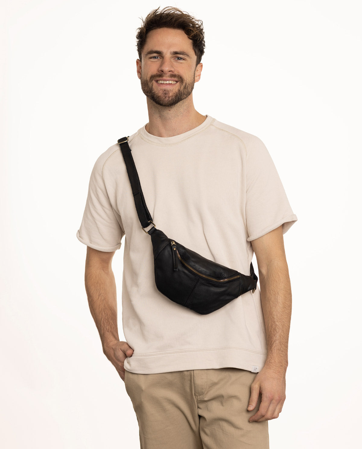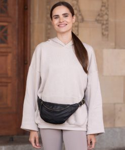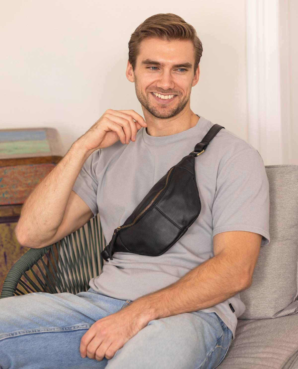 Handbag too big but pockets not big enough? We’ve got the perfect solution. “Cillian” can go with you to events where a big bag would just get in the way. Who wants to wear a cross body bag to a concert? Handbags just get in the way when you’re dancing! “Cillian” helps you keep your essentials close by. There’s plenty of space in this sheep leather belt bag for your phone, keys, and cash. Wear it around your waist or casually over your shoulder. It’s up to you! “Cillian’s” minimalist design means you can wear this practical, yet stylish, bag with any outfit. Summer’s on the way. So get ready for your next festival!