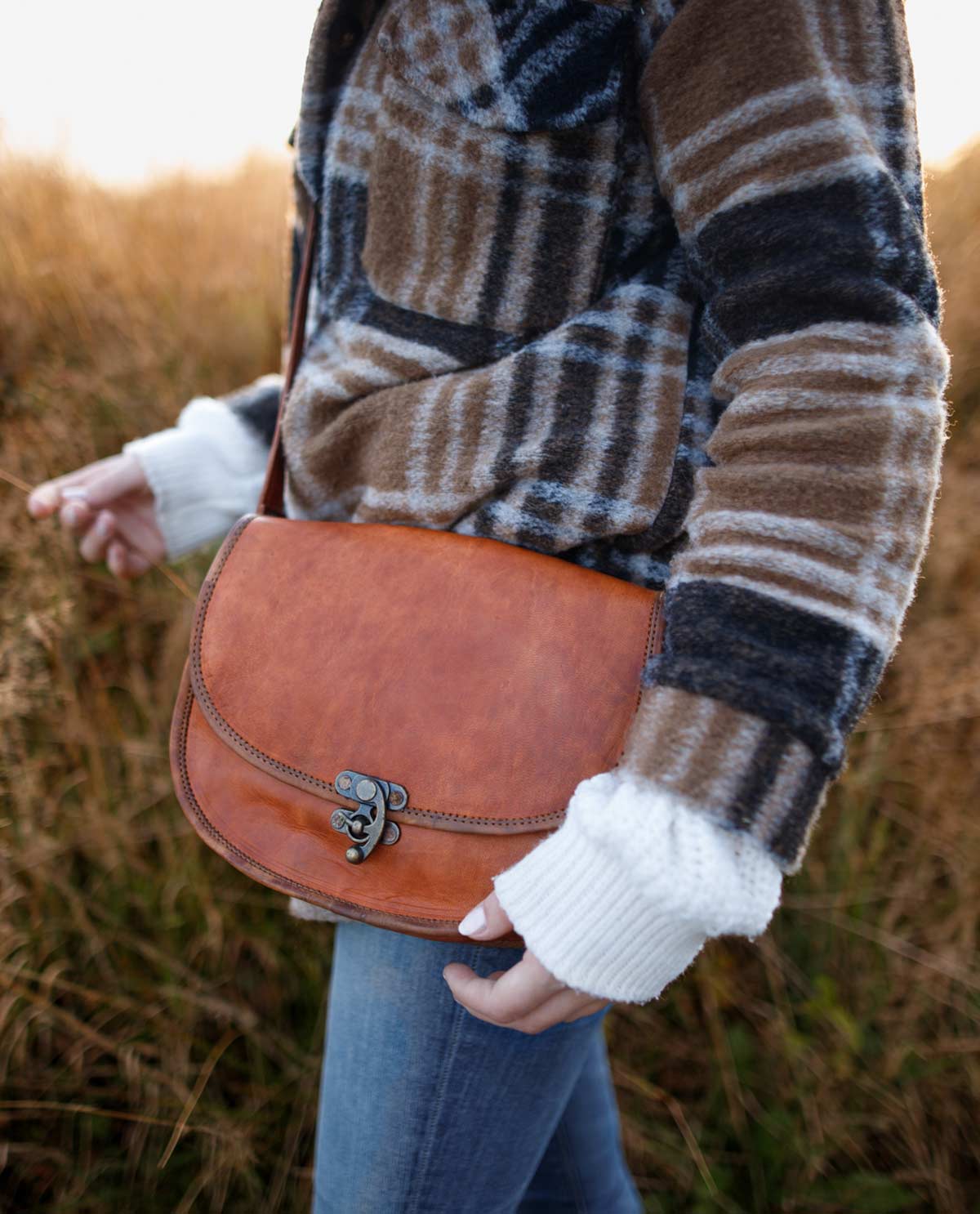 “Edda’s” well-thought-out interior has a zipped pocket and plenty of space for all the things you need, like your phone, purse, keys, journal and more. Secure your belongings using the gold hook that’s built into the flap on the front of the bag. “Edda” is made from soft yet sturdy vegetable-tanned goatskin leather, which gives this bag its unique look, the adjustable strap adds an extra element of comfort to this chic accessory.
