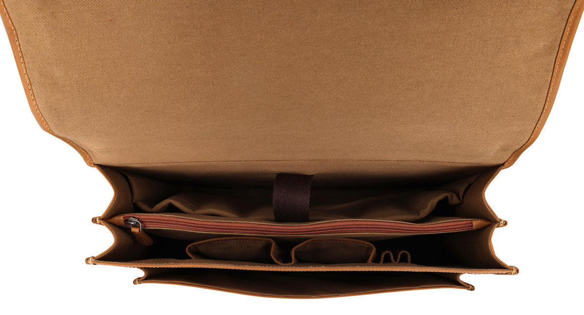 Thus, “Elmar” and its generous, centrally divided main compartment easily accommodate DIN A4 folders and document files of all kinds, as well as the appointment calendar, writing utensils, lunch package, a small water bottle, and much more. Technical devices up to a size of 15″ find space in a specially integrated laptop compartment in the bag design. The centrally inserted zippered compartment as well as the various slip pockets and the attached pocket on the front of “Elmar” also offer the possibility to store smaller belongings within easy reach, without having to search for them for long. The length-adjustable and detachable shoulder strap allows you to ideally adapt “Elmar” to your individual carrying habits, while two snap closures in a buckle look ensure that everything is protected from dust and moisture on the go.