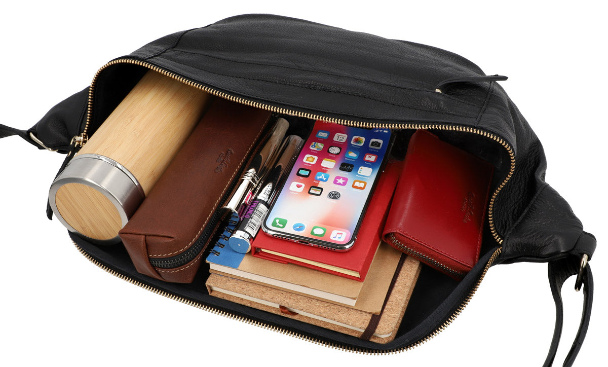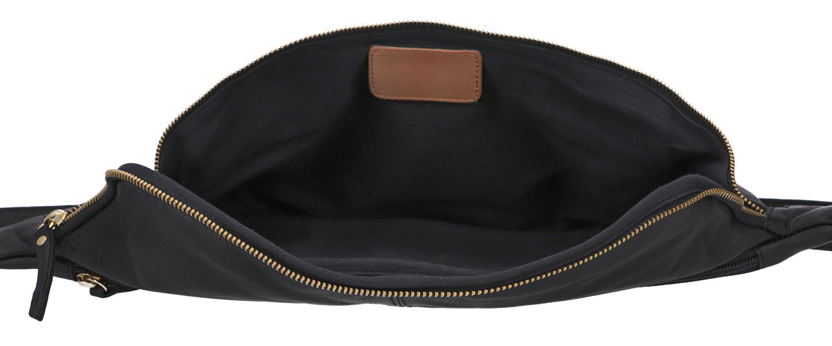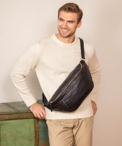 This robust and spacious cowhide leather bum bag-style bag combines the advantages of a compact backpack with a trendy, casual-cool bum bag, so you’ll always look good with this soft leather bag with gold zips. “Esben” can accompany you anywhere, so you can take everything you need with you while still looking cool. “Esben” has more than enough space for your phone, keys, purse, pocket organiser, pencil case, and more!