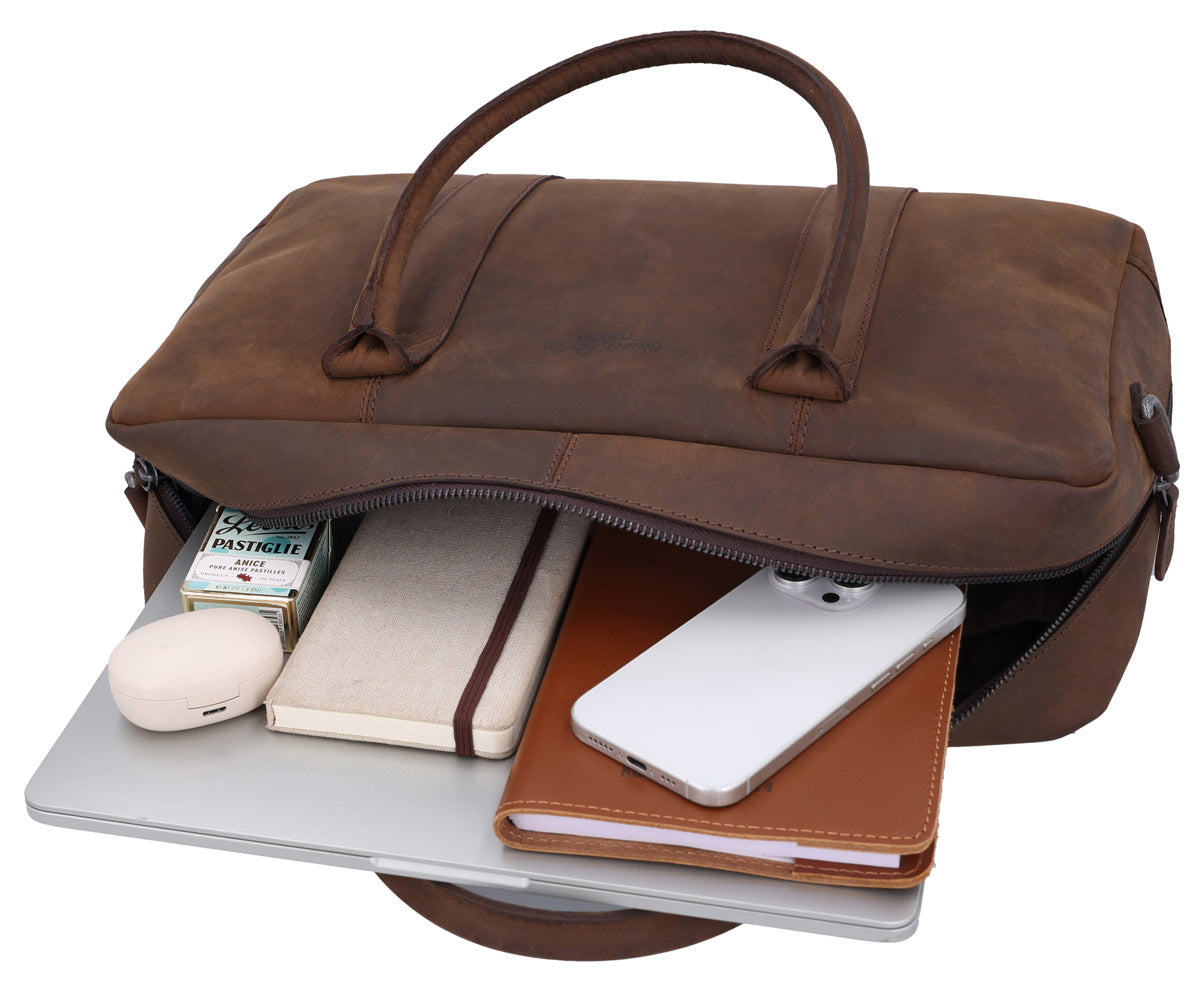 You’ll be perfectly equipped for your workday with our briefcase “Fynn”. This elegant bag made from high-quality leather combines timeless looks with functional design, making it the ideal companion for the office, meetings, and when you’re on the go. Its clean lines and meticulous craftsmanship make “Fynn” a statement of style and professionalism.