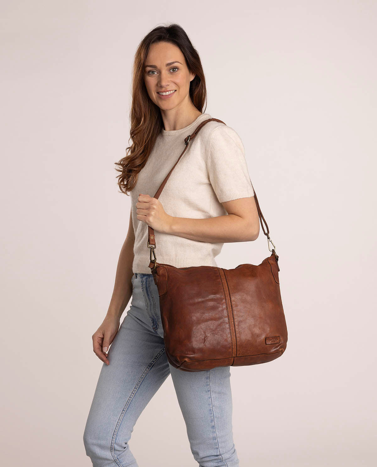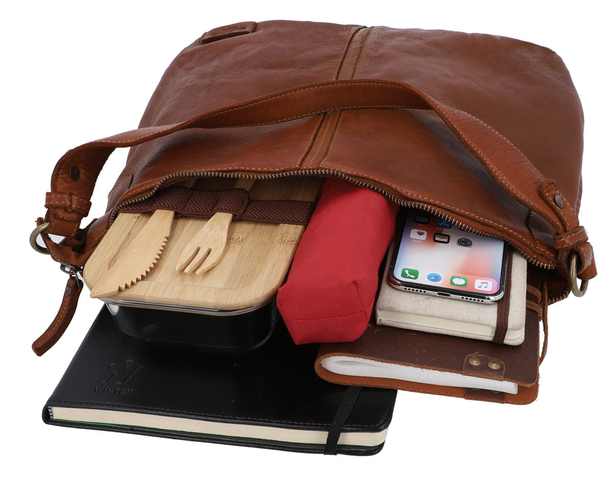 Are you looking for a classic tote bag that won’t let you down in the rain? Then “Hannah’s” exactly what you’ve been looking for! This medium-sized shoulder bag is made of sturdy cowhide leather and comes in a muted dark brown. You’ll be on trend and still have enough space for everything you need when you’re out and about in the city or at the office, thanks to the spacious compartment inside.