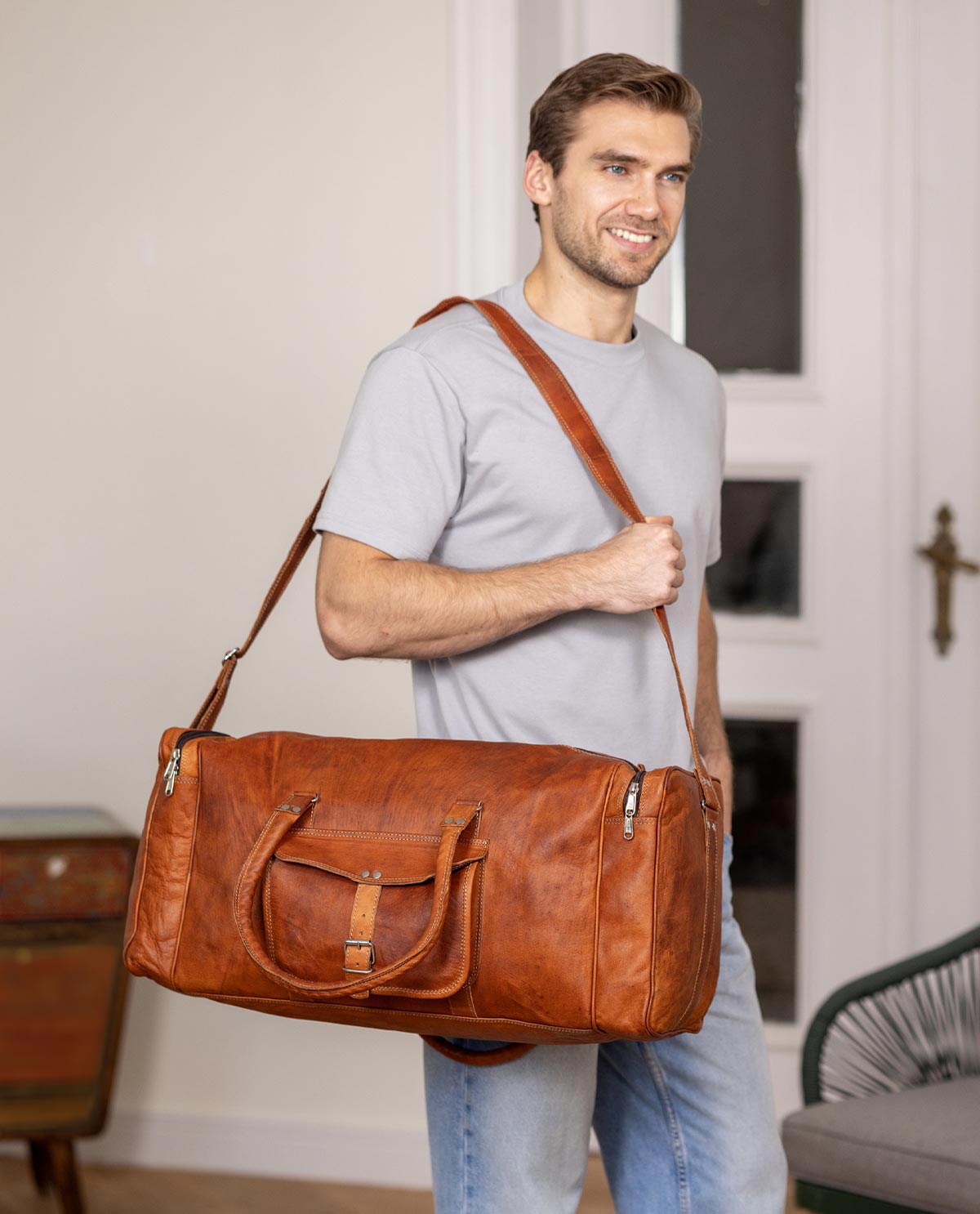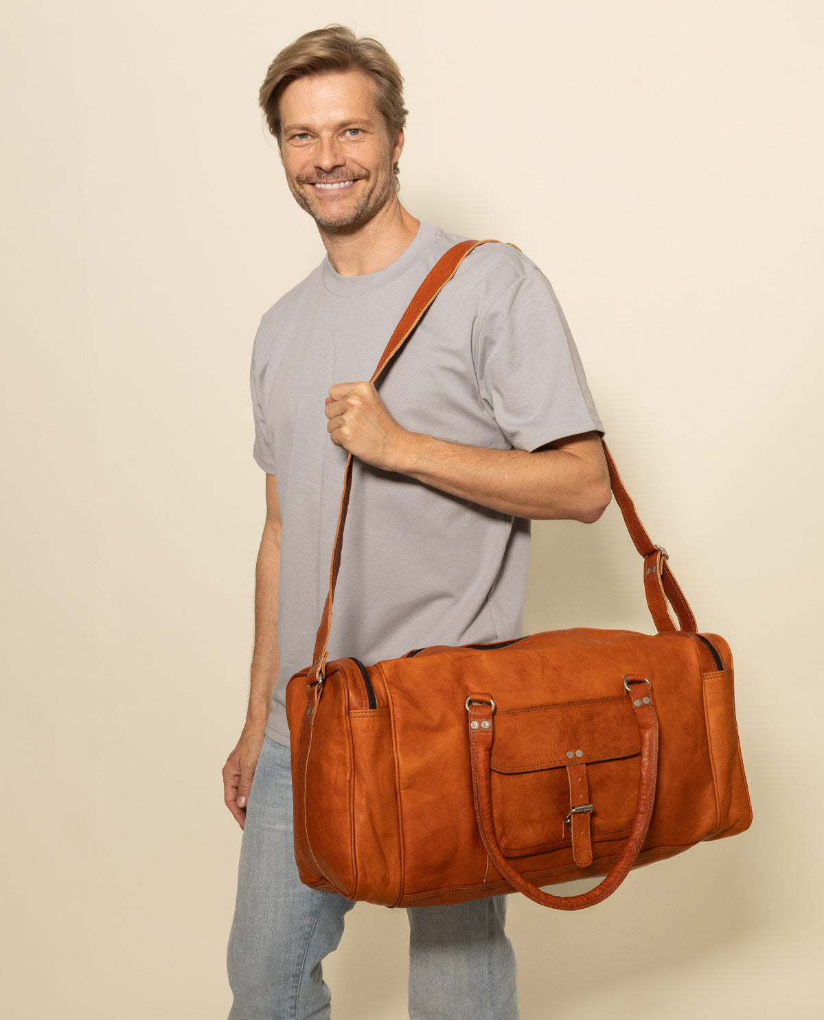 Do you want to visit the sea with your loved ones? Or would you rather embark on a city adventure with your closest friends? No problem! Take our loyal leather holdall “Harvey” with you on your next big trip or weekend getaway.