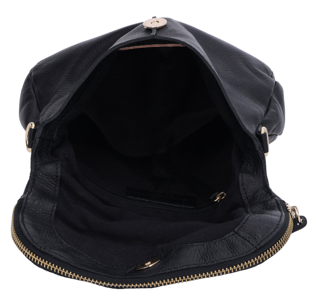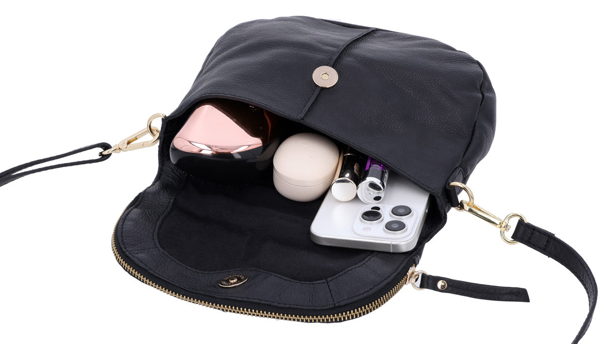 Our classic black bag “Iselin” is the perfect companion for the modern woman. Its simple yet stylish design is elegant and practical. “Iselin” has two carabiner hooks so easy to attach the strap, she also has a sturdy metal zip that secures your belongings, making this handbag safe and practical.