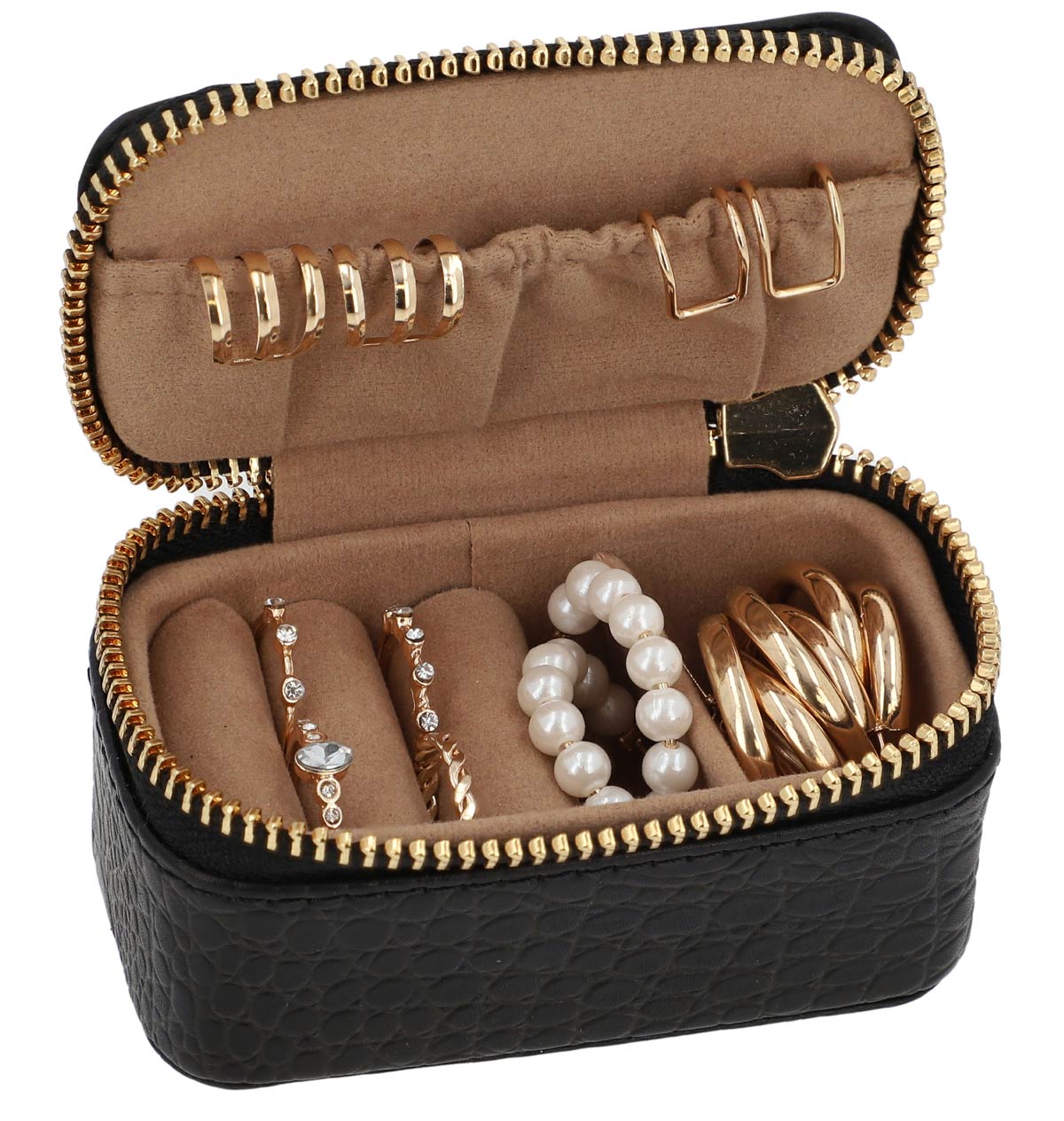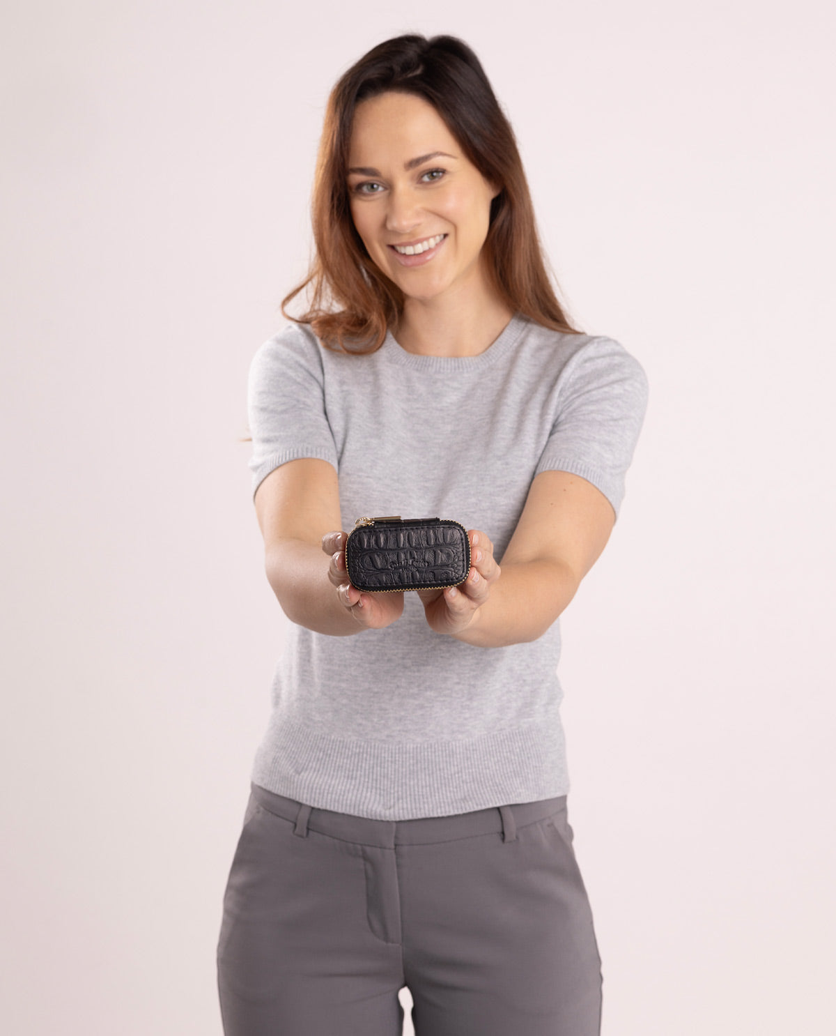 “Levke’s” soft internal compartments offer you plenty of space to carefully organise your necklaces, earrings, and rings. It has separate slots so your jewellery stays in place and is always easily accessible. You can rest easy knowing that nothing will tangle or get damaged.