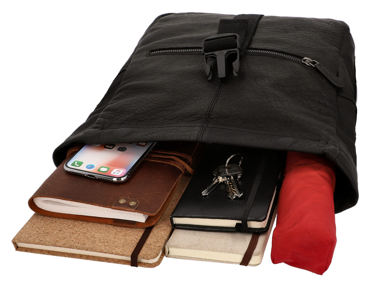 We’ve crafted this timeless roll-top bag from durable leather that’s sure to impress. Use the roll-top design to adjust the size and volume of your bag, you’ll always have enough space for your belongings inside this bag.