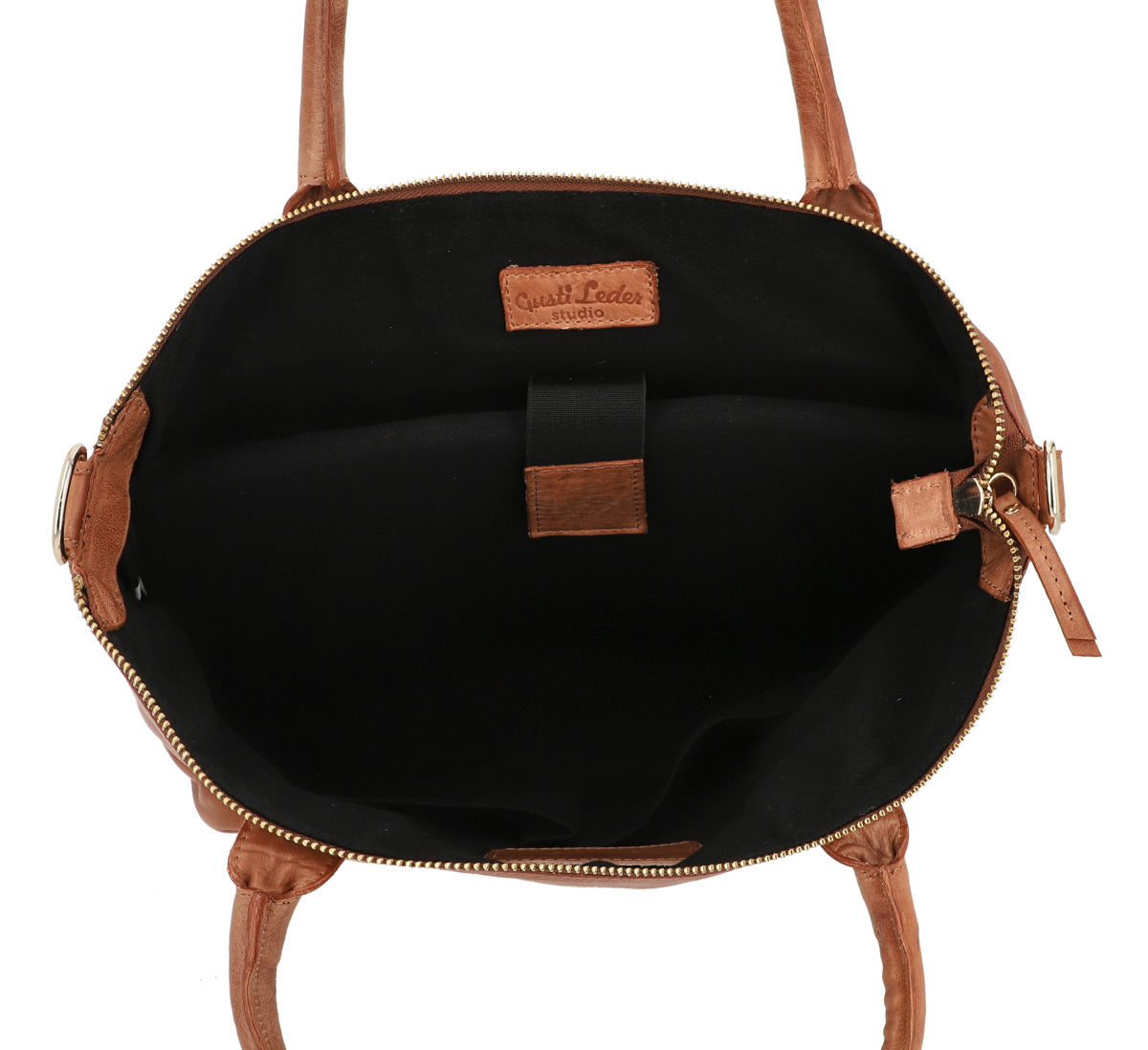 Made from high-quality tanned cowhide, this shoulder bag impresses with its sheer size and offers you versatility at the highest level. The extra-large interior compartment of “Mia” has a capacity of 10 liters and therefore provides enough space for everything. Here, your 15-inch notebook, wallet, small umbrella, various notebooks, keys, and pencil case find their place. Additionally, the large opening provides enough storage space for spontaneous shopping. Additionally, you have a side pocket at the back, where you can store items like headphones or keys ad hoc.