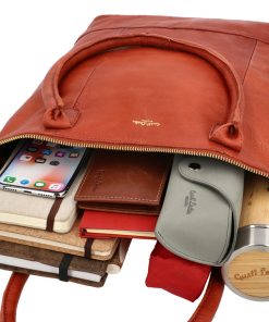 Made from high-quality tanned cowhide, this shoulder bag impresses with its sheer size and offers you versatility at the highest level. The extra-large interior compartment of “Mia” has a capacity of 10 liters and thus provides enough space for everything. Here you can fit your 15-inch notebook, wallet, small umbrella, various notebooks, keys, and pencil case. Additionally, the large opening offers enough storage space for a spontaneous purchase. Additionally, you have a side pocket at the back where you can store items on the spot, like headphones or keys.