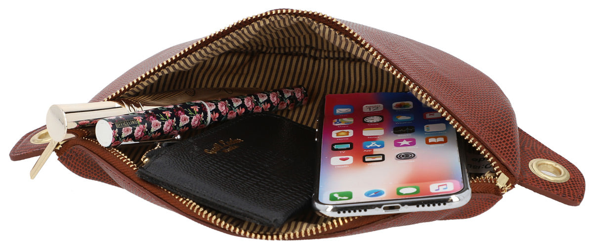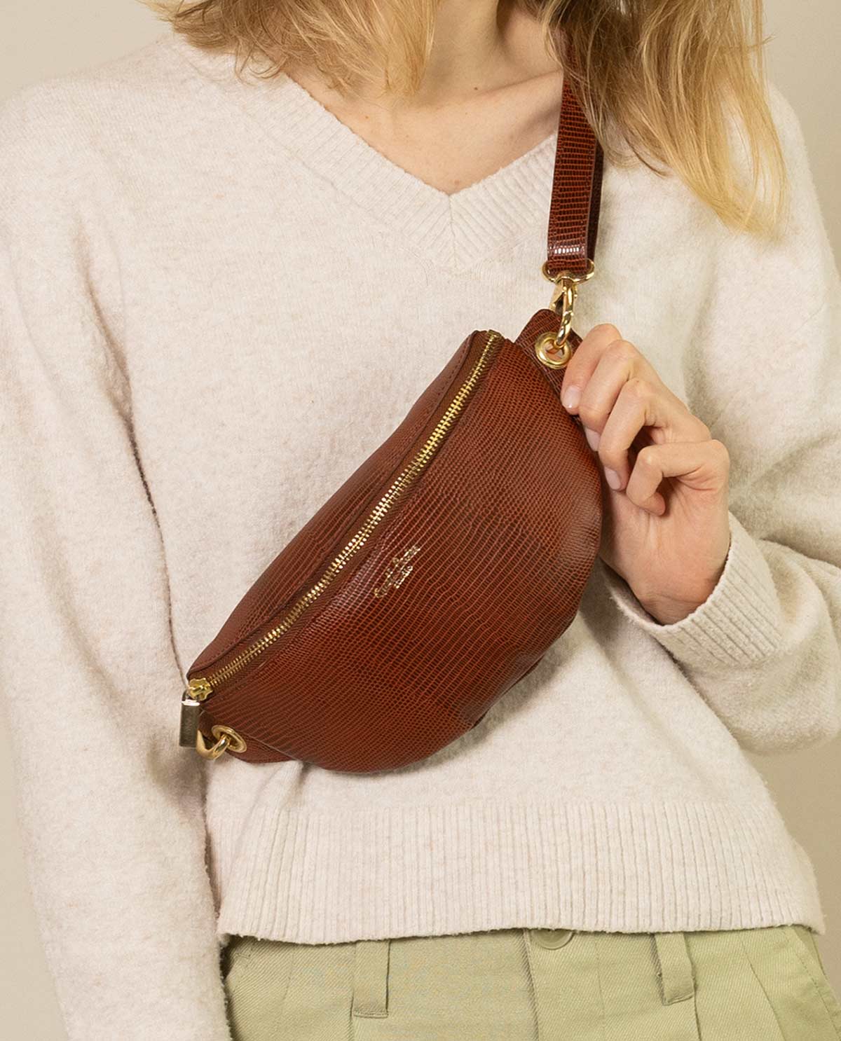 Confident, sophisticated, and sure to turn heads… That’s our “Rosamonde”! This trendy belt bag combines a sense of style with something new; a modern casual-chic element, that doesn’t need to fight for the spotlight. Thanks to its classic shape and trendy crocodile-skin-look finish, “Rosamonde” can be worn with any look and is sure to turn heads.