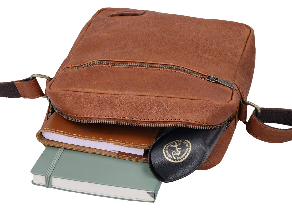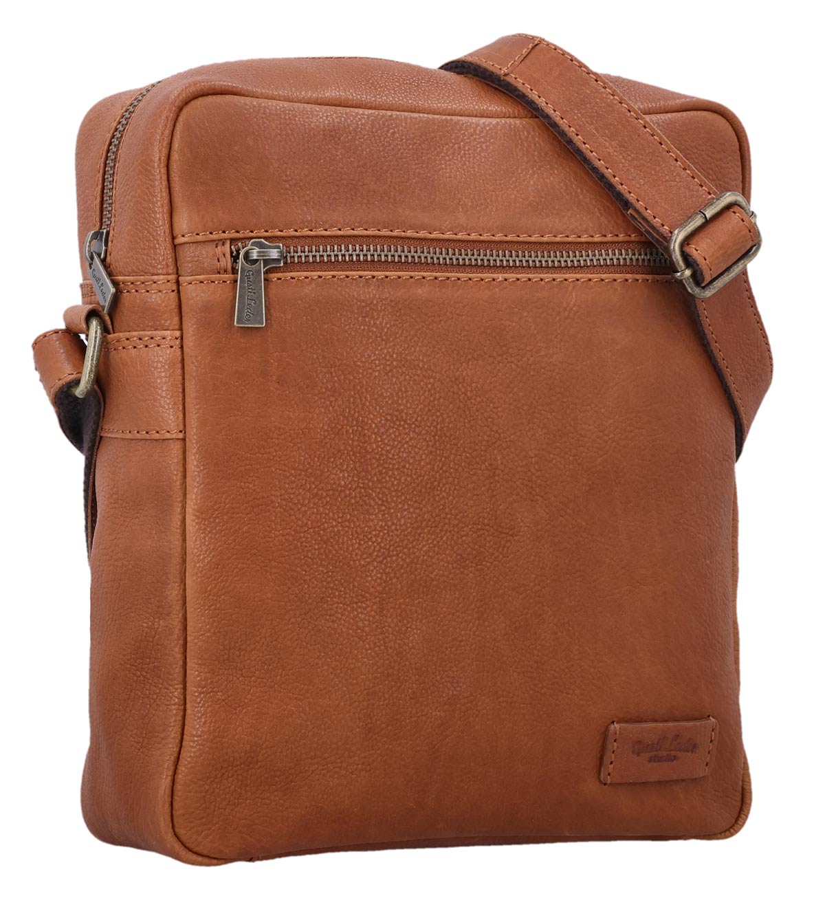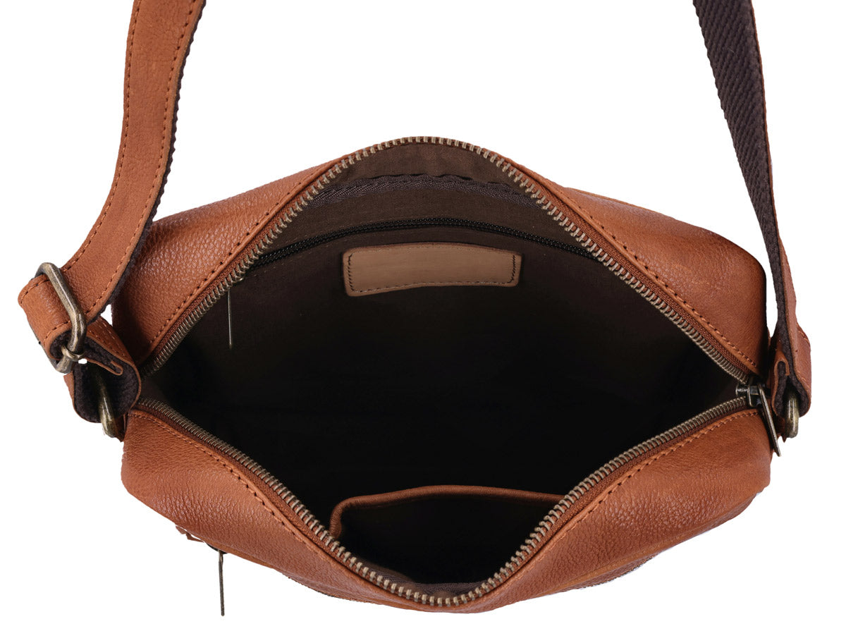 This leather bag for men combines functionality with classic design. In addition to the spacious main compartment, it has two pockets, one on the front and one on the back, both with zippers. You can neatly and conveniently store your belongings in these practical pockets. Carry it comfortably over the shoulder and enjoy the versatility and elegance of this bag. Convince yourself of the high-quality craftsmanship and stylish look that becomes more beautiful over time.