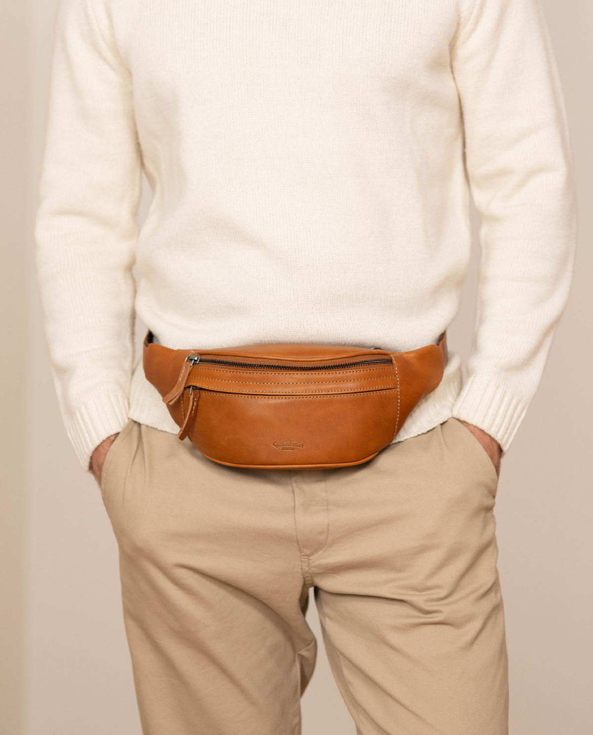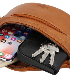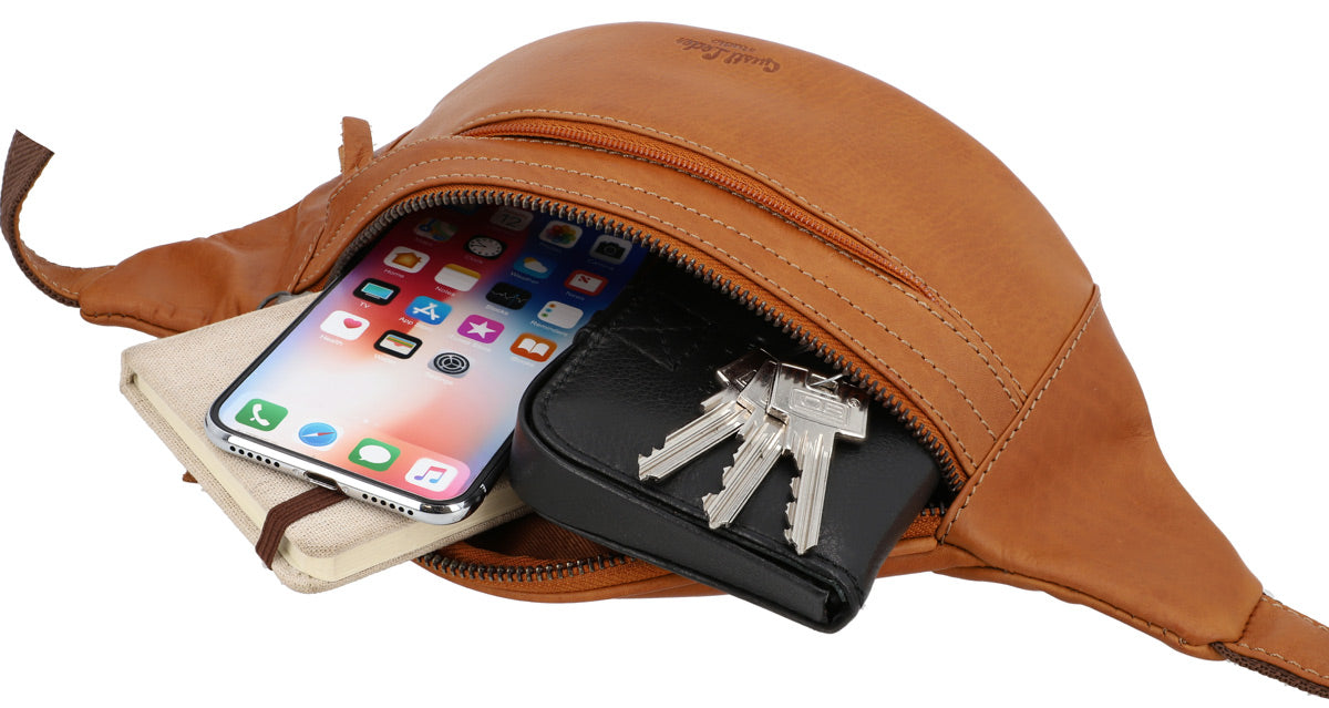 Our simple, no-fuss belt bag “Spencer” will win you over with its minimalist design, quality, and functionality. The high-quality processed cowhide leather means this belt bag is strong and sturdy. It has multiple zipped pockets where you can keep your festival essentials safe. Experienced festival-goers and concert lovers will really appreciate this bag’s robustness. There’s plenty of space for your wallet, phone, keys and more inside. Adjust this bag to fit you perfectly using the adjustable strap and plastic buckle. Wear “Spencer” over your shoulder or round your waist, whatever suits you. Our motto is: “Spencer” is simple. Practical. Good.