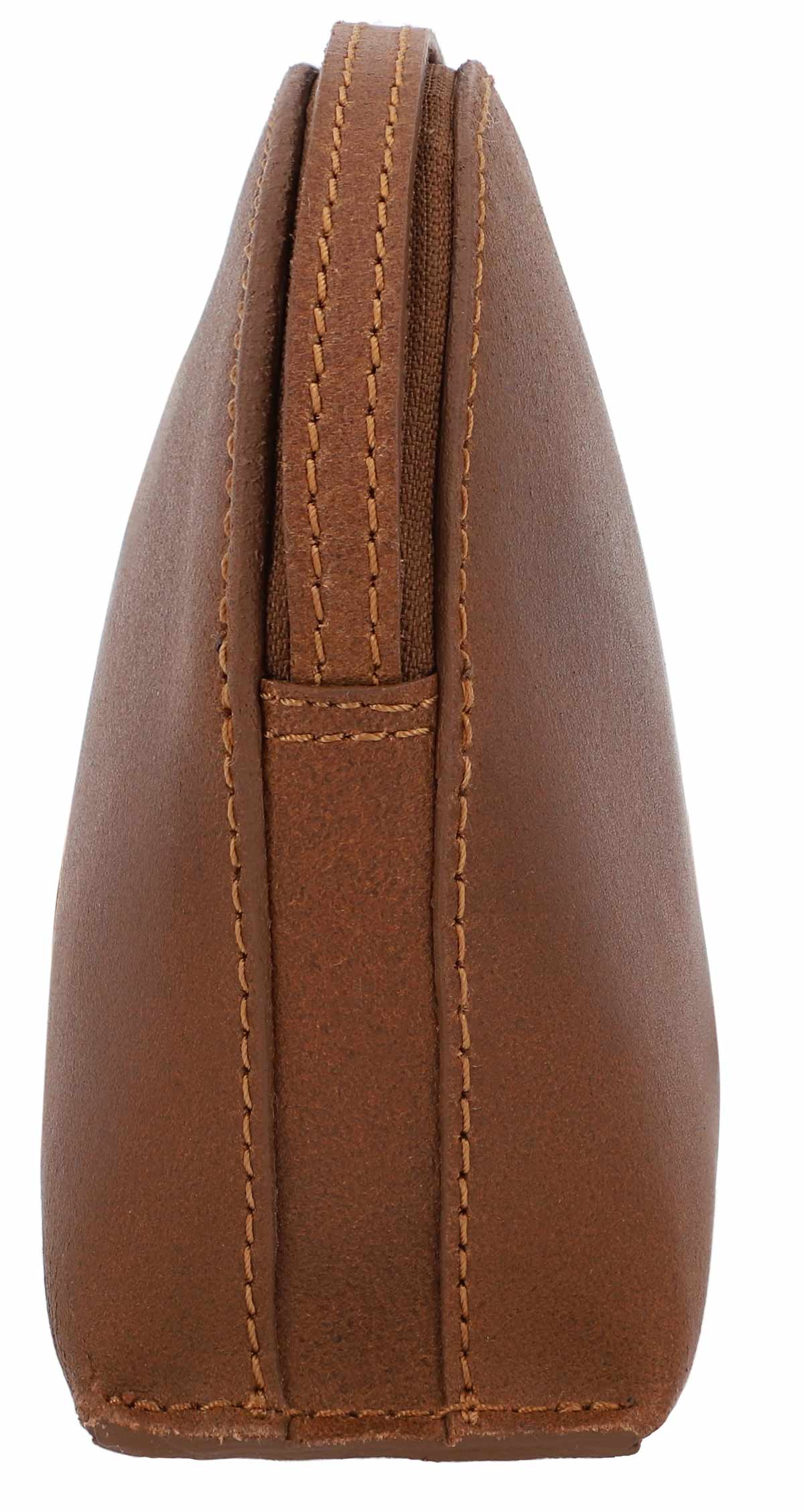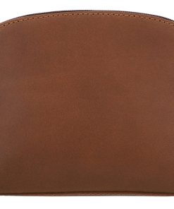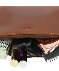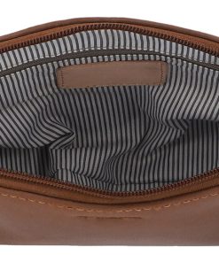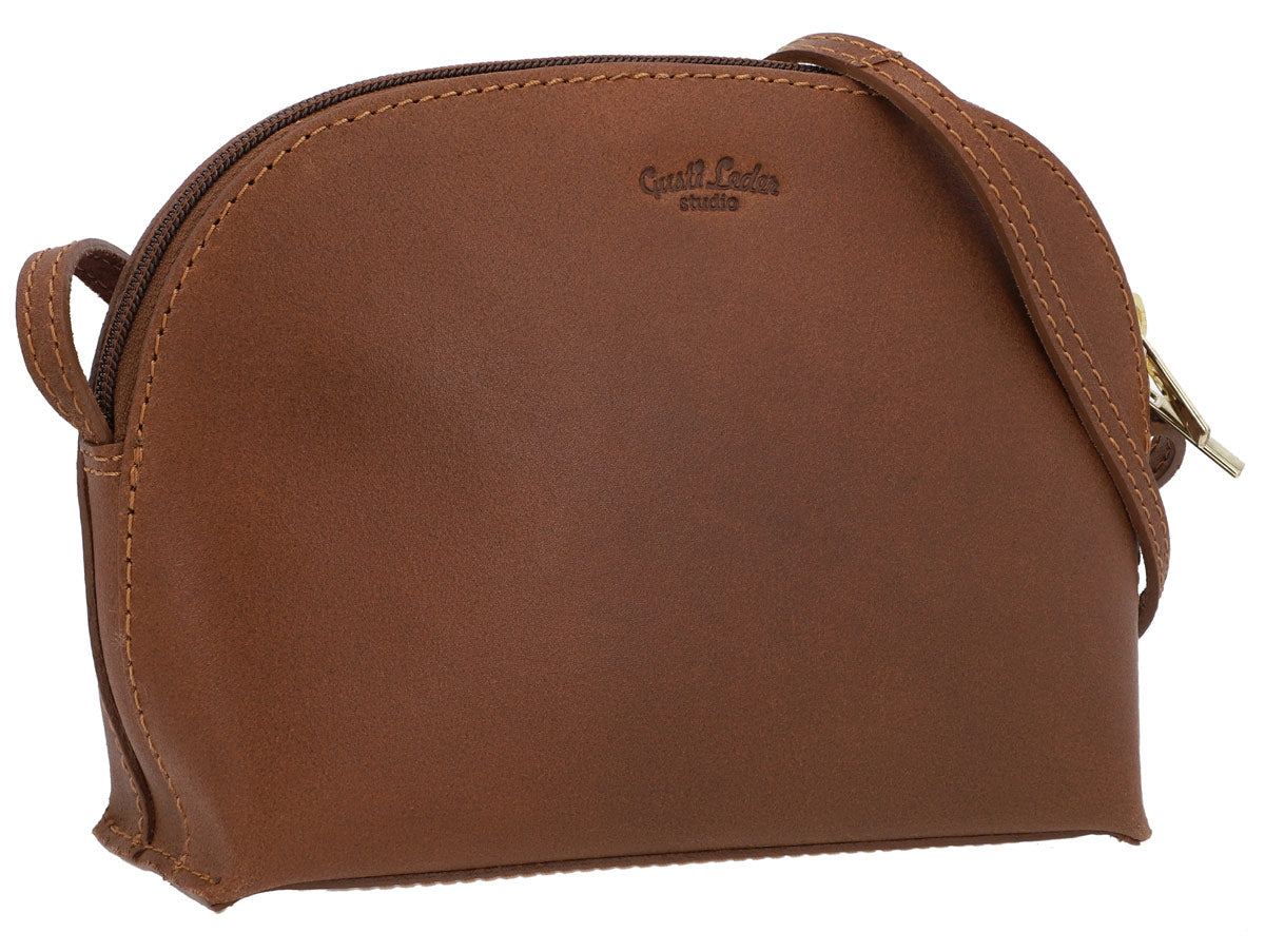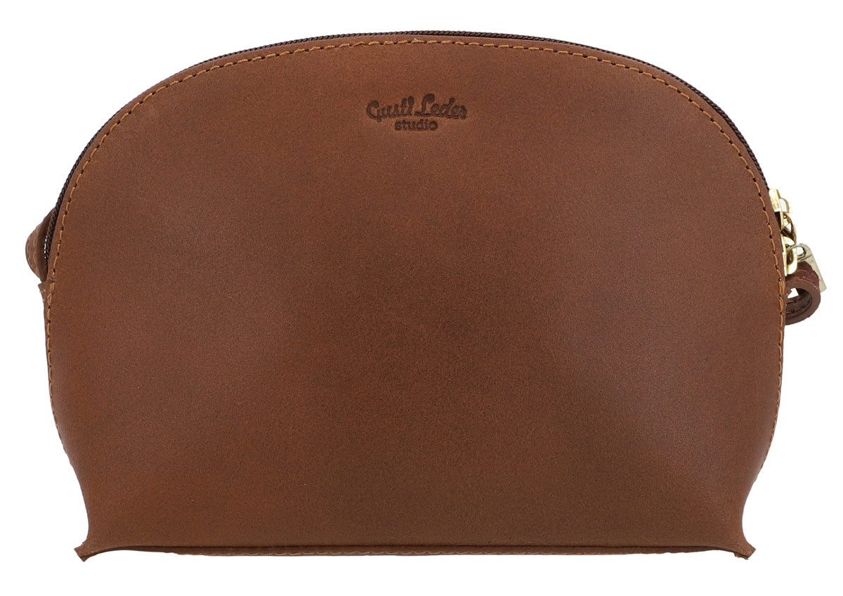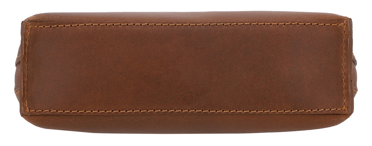This stylish, sturdy brown cowhide leather handbag perfectly combines a flat-bottomed half-moon shape with an eye-catching gold two-way zipper, making “Tilda” easy to pair with any outfit and suitable for all occasions and events. “Tilda” even has an extra security feature – an internal zipped pocket that’s integrated into the bag’s striped lining for your keys, phone, or small purse, keeping your belongings safe from pickpockets.