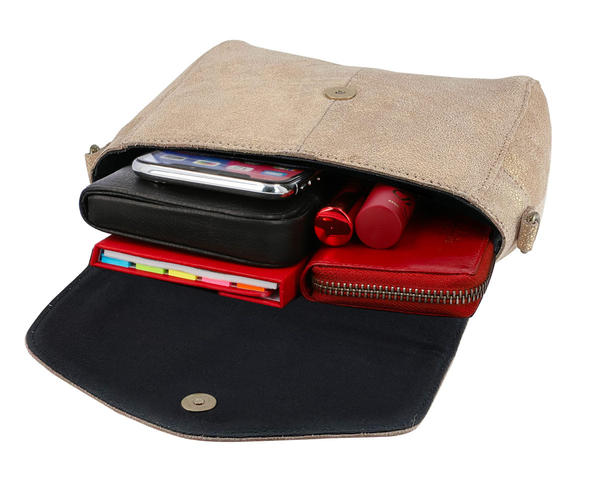 This soft yet sturdy buffalo leather shoulder bag has plenty of space for your purse, keys, phone, and even a small notebook. No matter if you’re whizzing through the city or watching the sunrise after a night on the town: “Willow” won’t let you down. So, your belongings won’t make a run for it when you’re on the go. This high-quality suede bag is secured with a magnetic fastener.