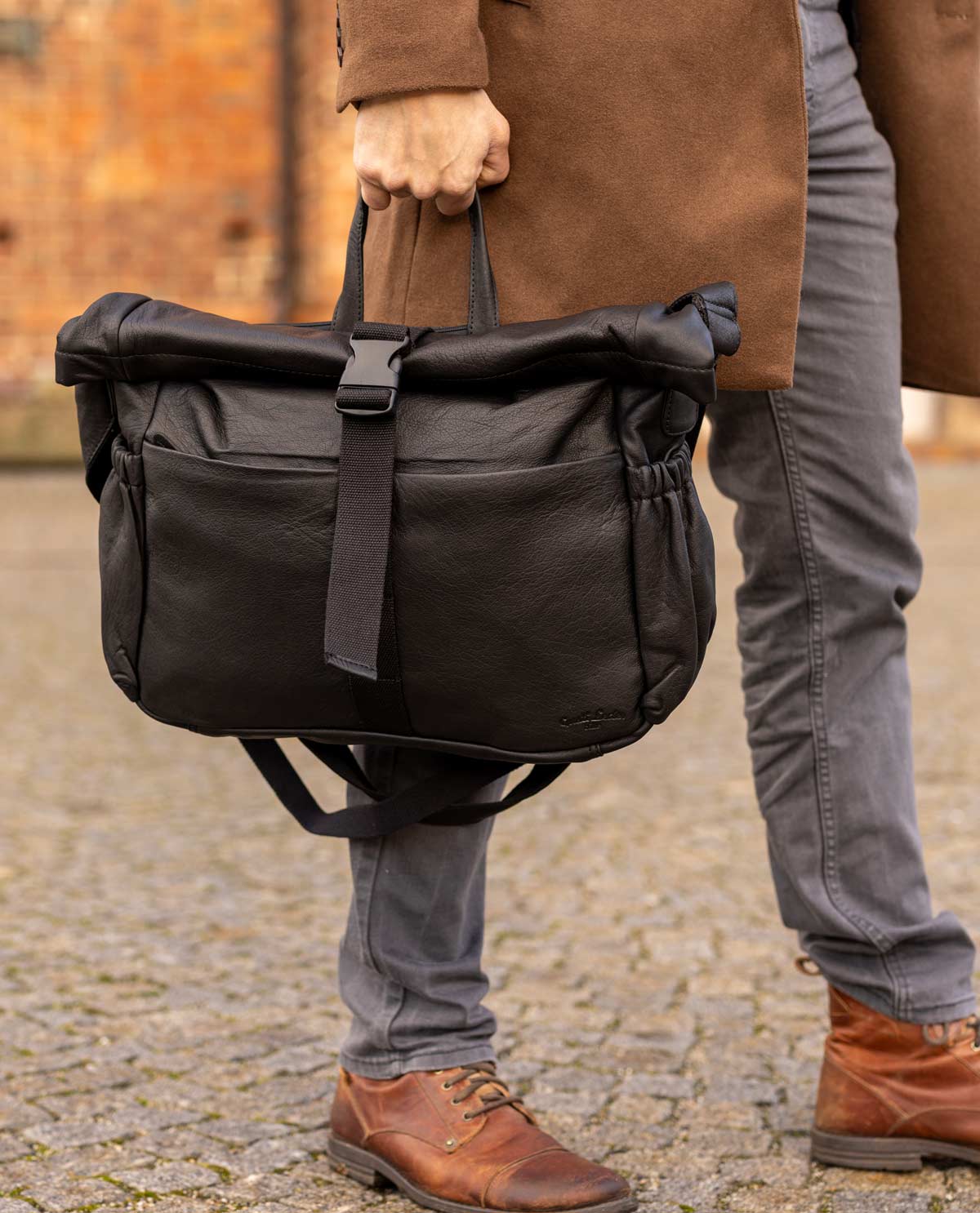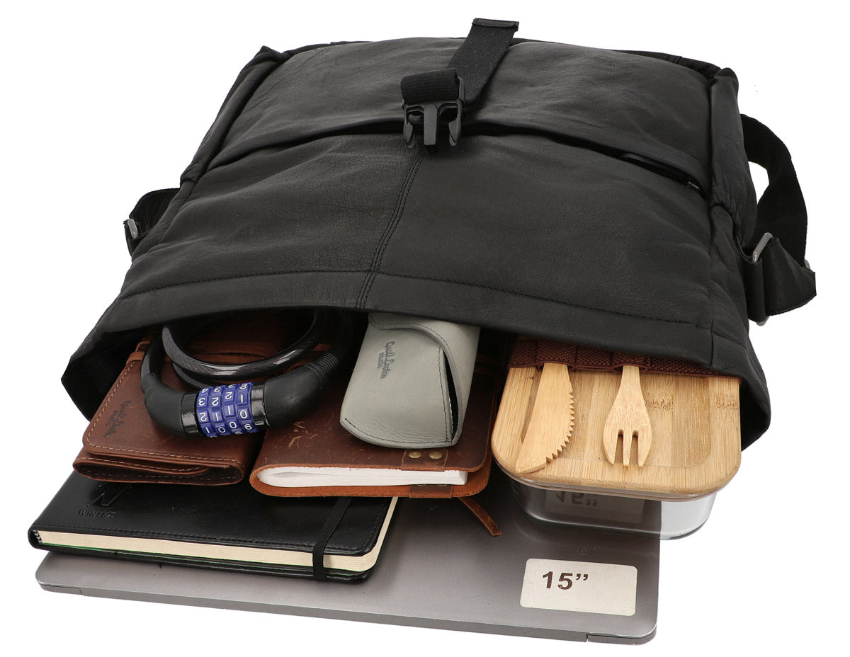 Our messenger bag “Zane” is made from elegant black leather, making it the perfect companion for your everyday life. Whether used as a bike pannier, shoulder bag, or worn across your body, it adapts effortlessly to your needs. The additional strap ensures secure support, even while cycling, offering optimal flexibility.