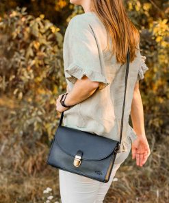 This classic handbag has two compartments inside where you can keep your belongings safe during the day and on big nights out. There’s even space for your favourite book. Take our elegant shoulder bag “Zoey” to your next party. The gold fastener is easy to use and completes “Zoey’s” sophisticated vintage look.