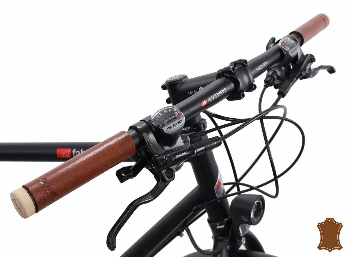 Our leather bike handlebar grips “Albertus G.” can be easily installed on any bike, from fancy single speed to Dutch bikes, making sure you look good wherever you go. The high-quality processed leather used to make these handlebar grips makes sure your bike stands out. But “Albertus G.” can do even more! These chic handlebar grips are made from real leather and provide you with an excellent grip when you’re out on your bike, making it easy to steer no matter the terrain. The leather used to make these handlebar grips means that they’re perfectly suited to the shape of your hands, and the springs provide protection from shock and movement when you’re cycling. This chic accessory make your bike’s handles much more comfortable, especially in the colder weather. You’ll have every situation under control with “Albertus G.”!