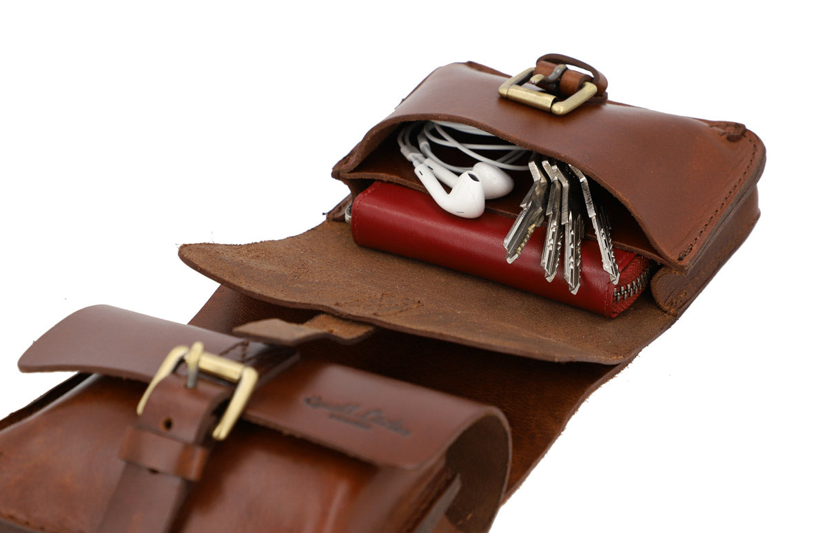 ”Arie den H.” will wow you with its two main compartments, one on each side of your bike frame. It’s the perfect place to keep your cycling essentials, tools, lock and keys, safe when you’re on the go. The bag is secured by a buckle. So, your belongings won’t make a run for it when you’re on the go. The high-quality buffalo leather gives this bag shape and stability and makes sure it turns heads wherever you go.
