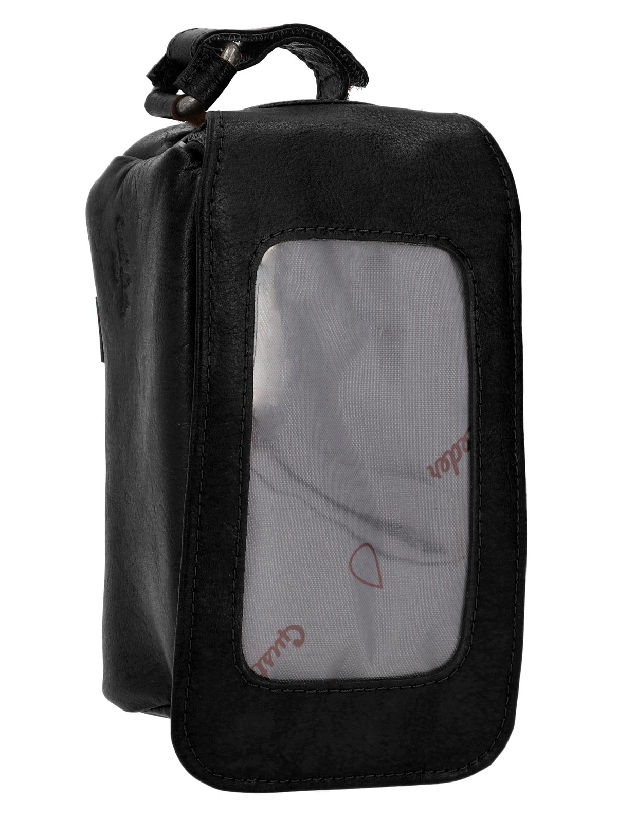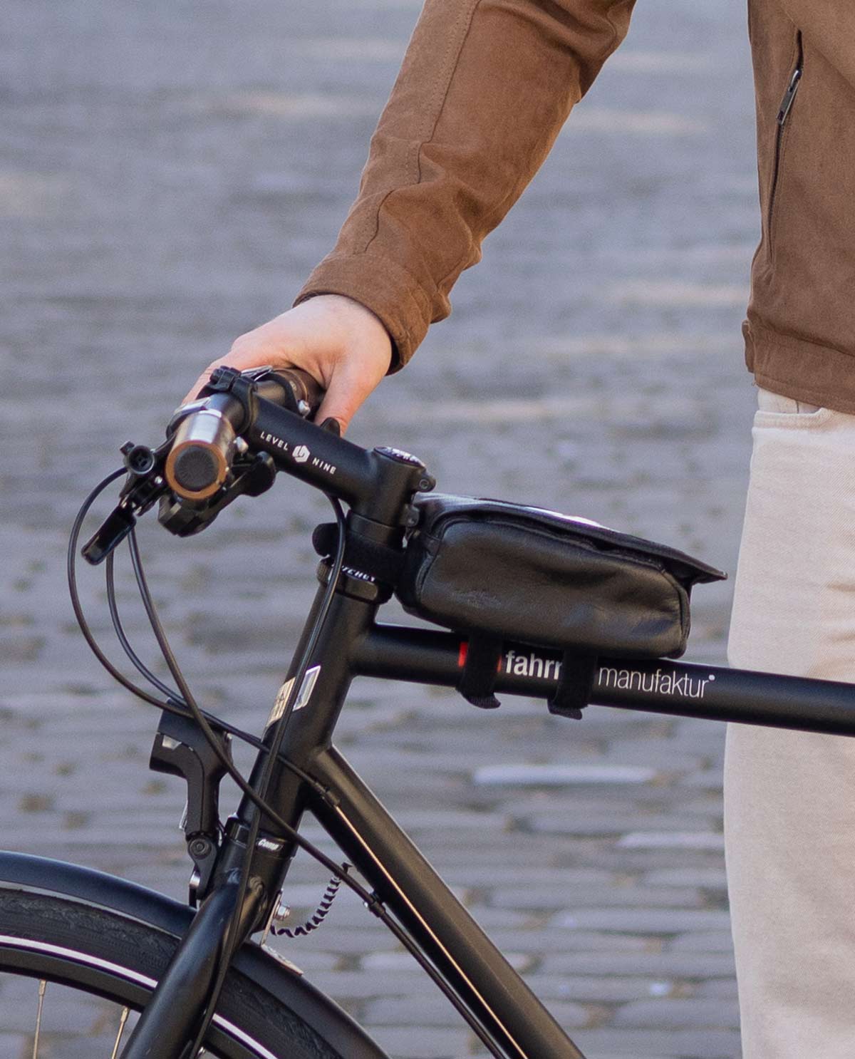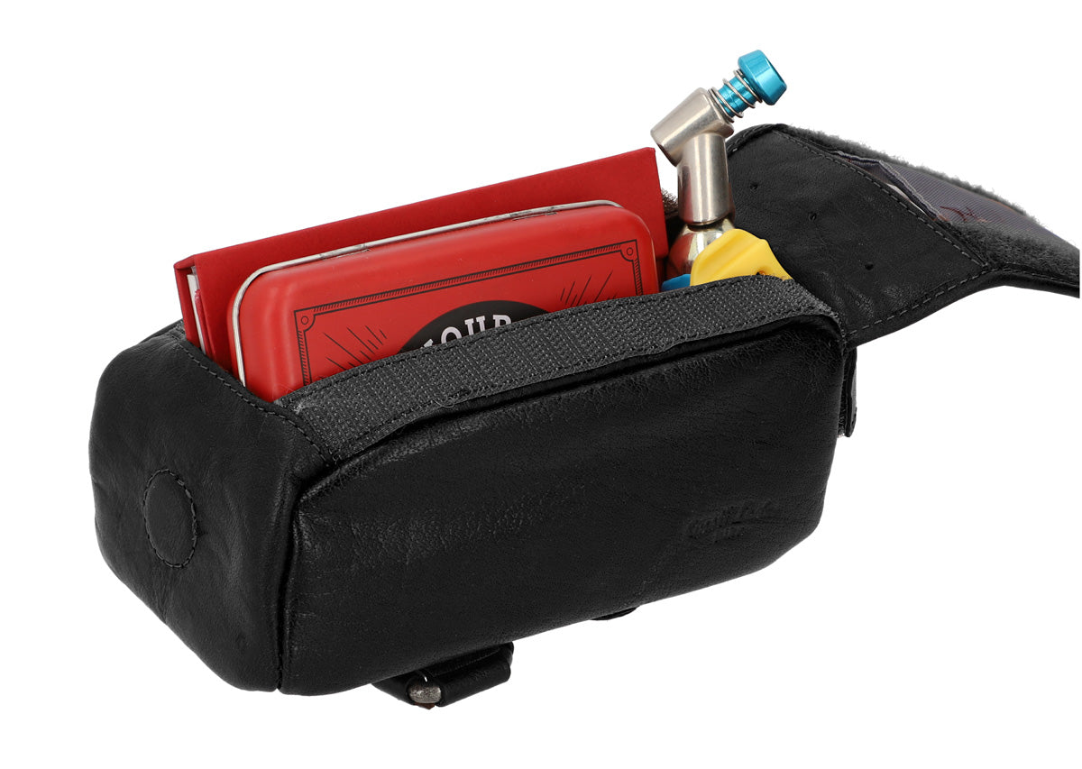 She’s small but strong. This practical handlebar bag is made of high-quality processed buffalo leather, which means she’s extra sturdy and stable and can be attached to your handlebars using the two leather straps on the back of the bag. The small compartment under the viewing window is the perfect place to keep your keys, tools, and other essentials safe when you’re on the go. Maps on, phone secured, and you’re ready to hit the road!