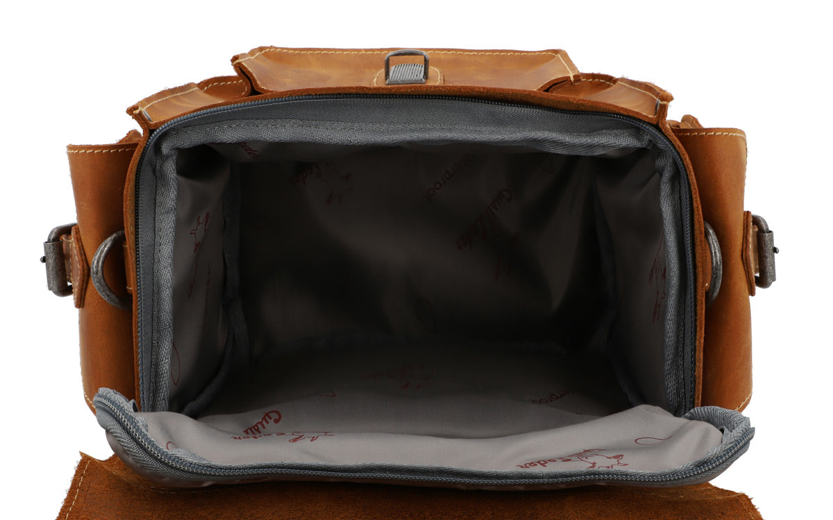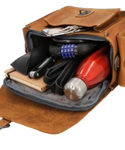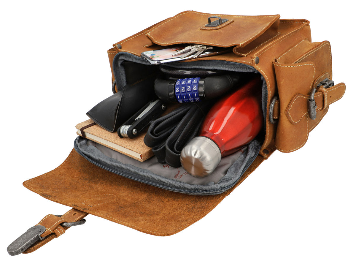 “Gabriel” is made of high-quality full-grain buffalo leather that’s truly stunning. This stylish light brown bike bag has a spacious main compartment. It’s the perfect place to keep your phone, toolkit, lock and water bottle safe. Thereapos;s an internal polycotton pocket that protects your belongings from water. “Gabriel” also has three side pockets for your smaller items, like your headphones. This trendy vintage handlebar bag will win you over with its compact shape and ease of use. It can be attached to your handlebars using the mounting plate in no time at all. You don’t have to choose between comfort and functionality anymore.