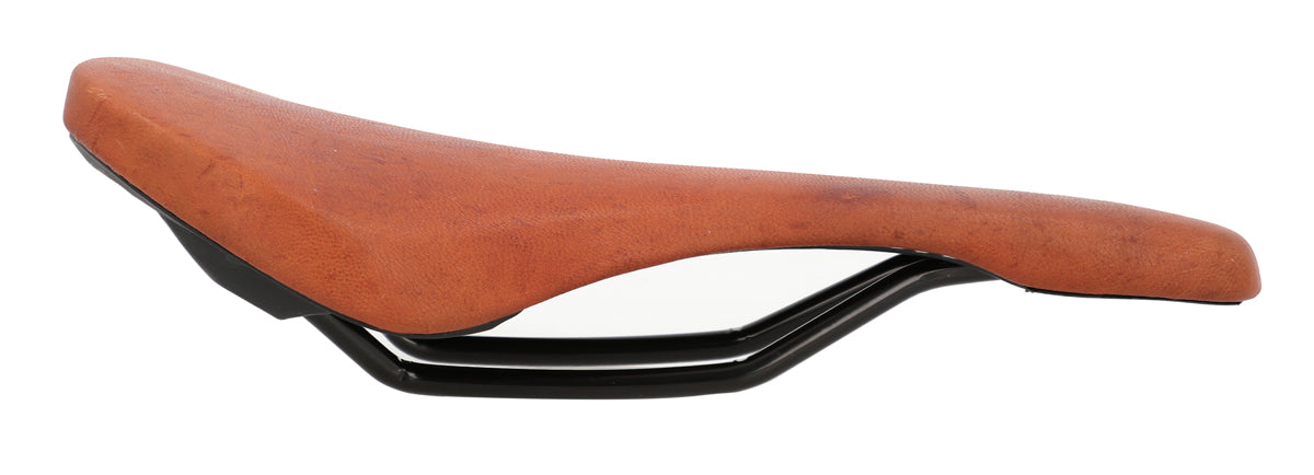 “Henri C” is the perfect saddle for you if you’re looking for something dynamic yet stylish. This sporty leather saddle will win you over with its flat shape and clean look. The sturdy plastic shell is covered in high-quality goatskin leather. So, this leather saddle is particularly lightweight and ideal for all single-speed bikes, racing bikes, or fixies.