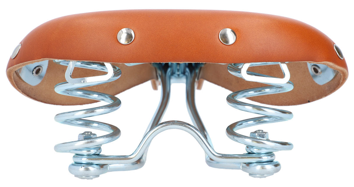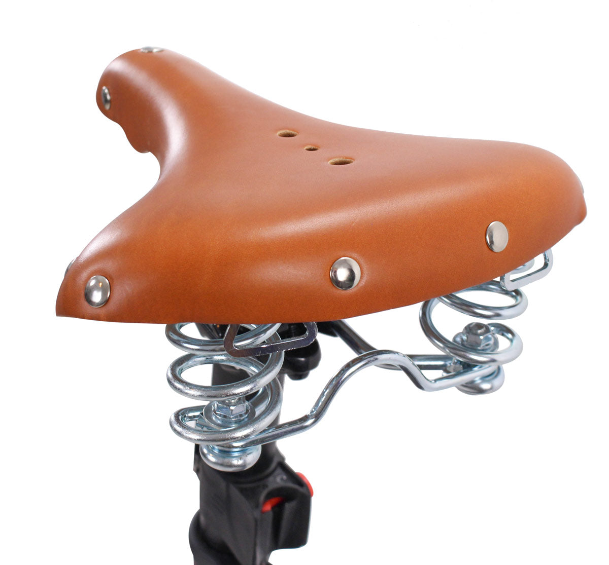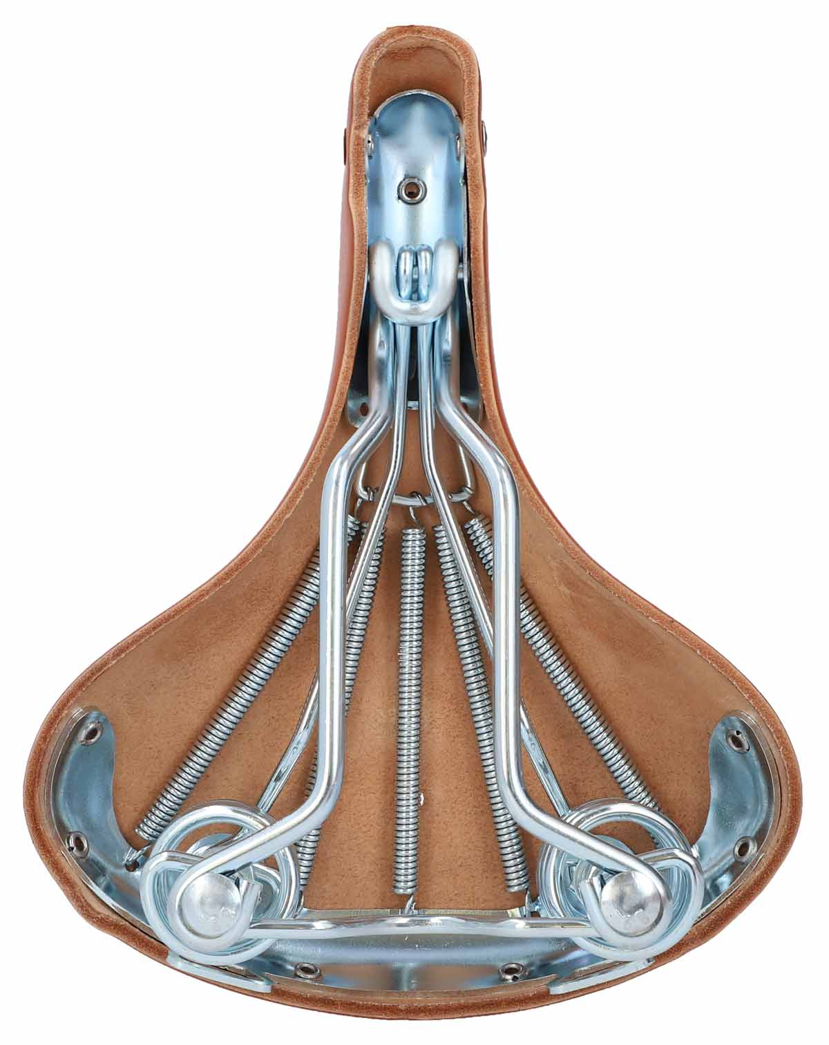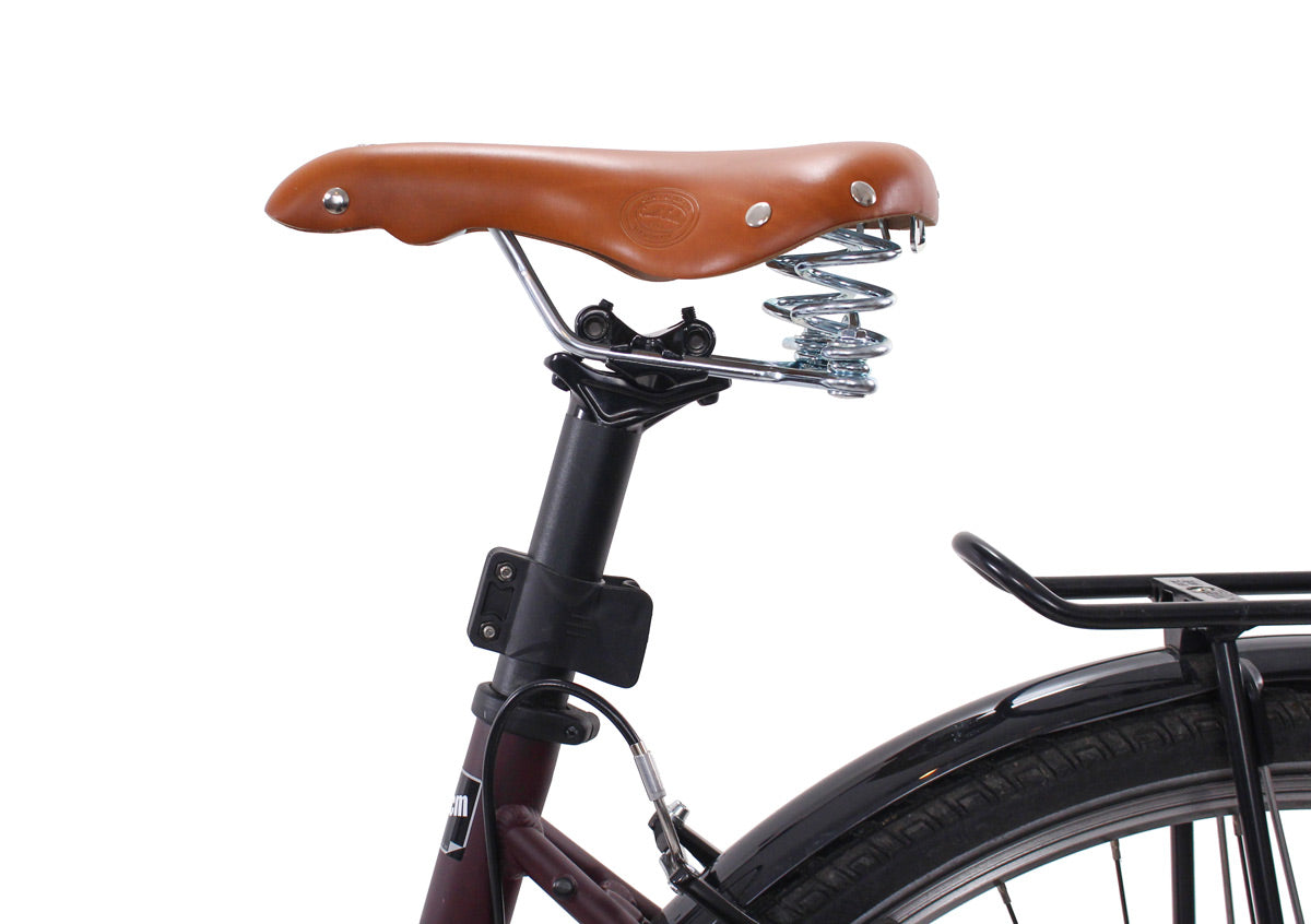 Thanks to its special shape with a narrow shaft and wide seat area, “Mark C.” optimally distributes body weight and ensures pressure relief – whether you’re riding sporty or relaxed. The metal springs guarantee additional comfort and effective shock absorption. The high-quality cowhide leather makes the saddle 100% breathable, so you don’t risk a sweaty bottom even on long distances. And unlike PVC saddles, “Mark C.” remains free of cracks and material fatigue even after years. Get on your bike and explore the world – with maximum riding fun from the very start!