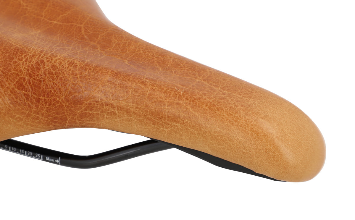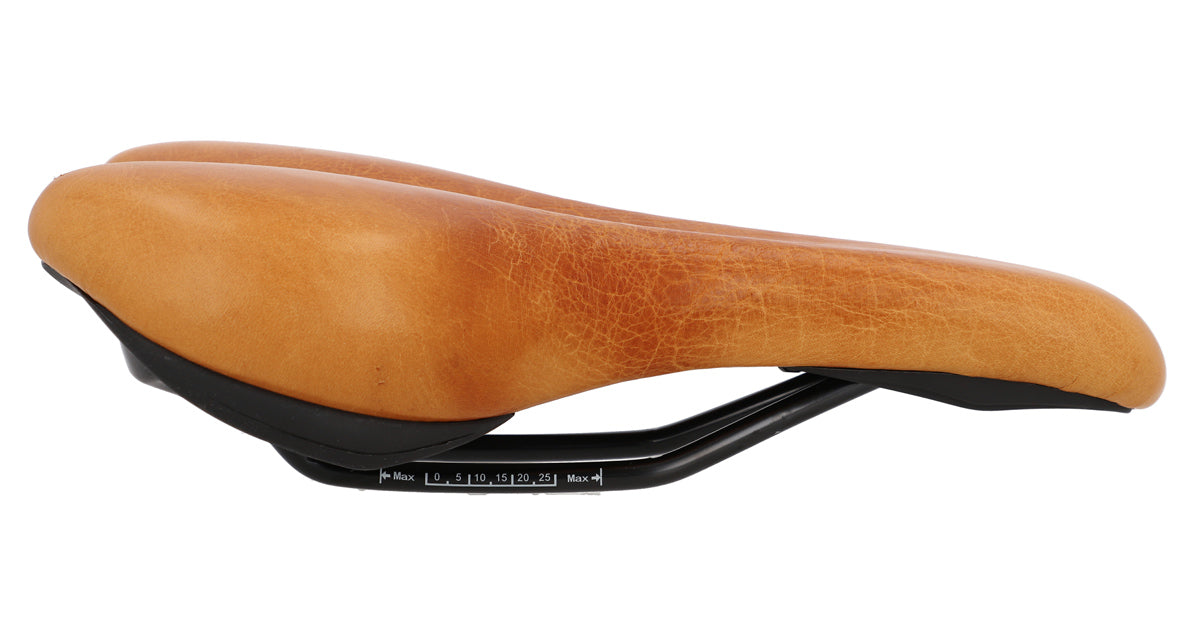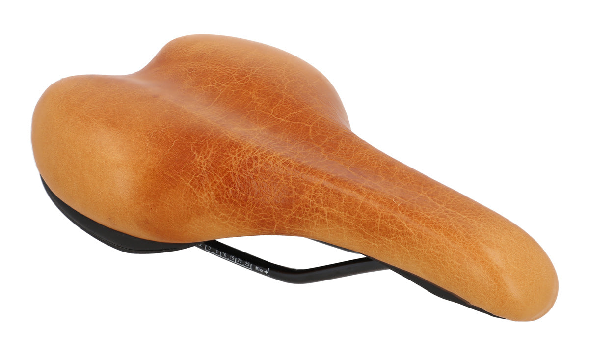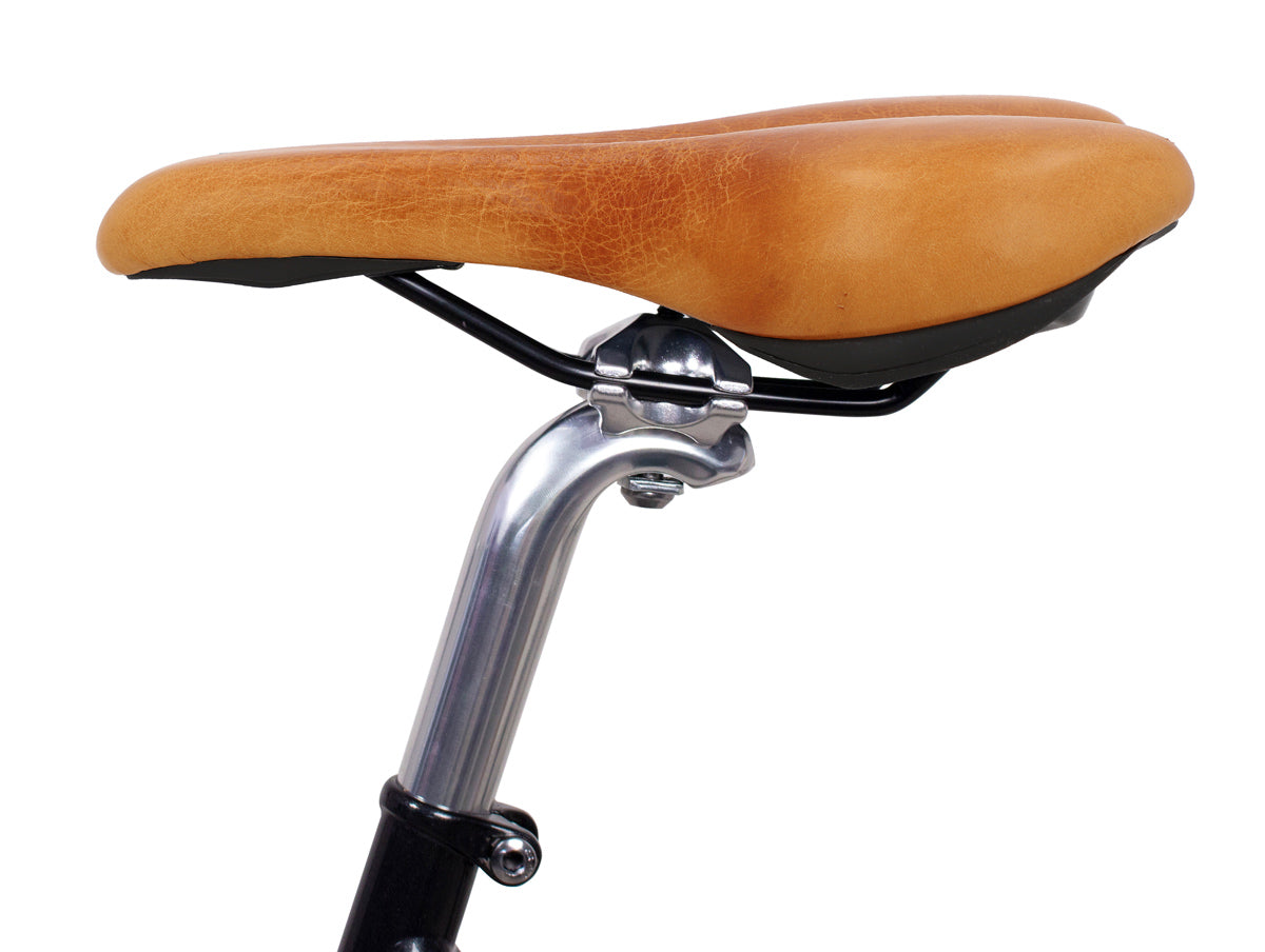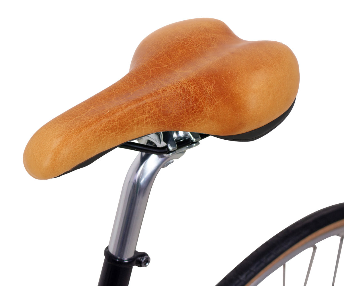 Are you looking for a leather saddle that’s pretty and comfortable when you’re out and about in the city? Then you’re in the right place! Thanks to “Regina S.” clean, modern, sleek design and soft surface, this saddle doesn’t just make your bike look good, it makes sure you can always see traffic too – thanks to the upright sitting position!