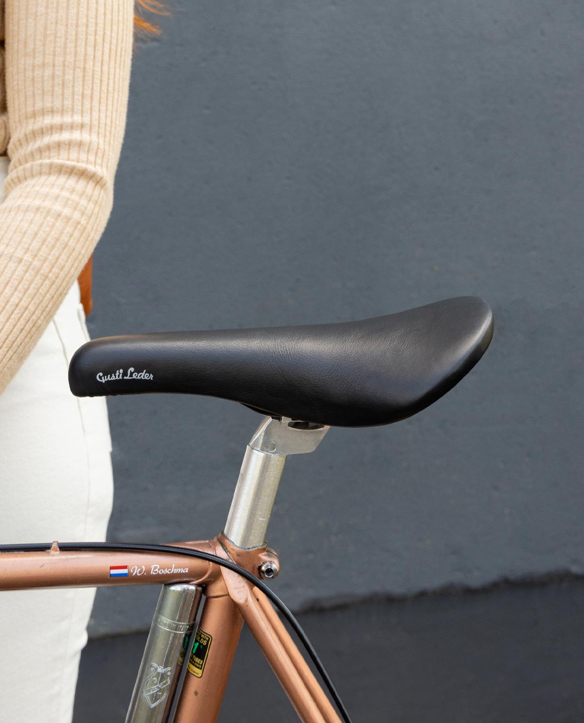 The timelessly simple “Sean Y.” is a true jack-of-all-trades among leather saddles. Whether for quick city rides, long tours, or even bikepacking adventures – this saddle can handle it all! Its stable plastic shell covered with high-quality cowhide leather makes it particularly light and thus the perfect companion for racing bikes, fixies, city cruisers, MTBs, and trekking bikes. Visually a real eye-catcher, “Sean Y.” impresses with comfort and durability.