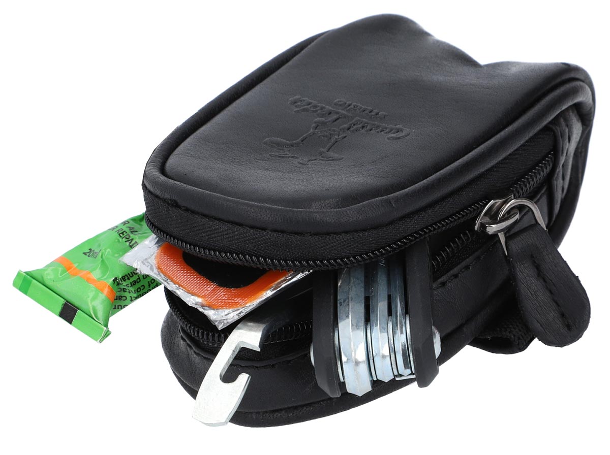 Thanks to the zipper, your utensils remain safe and dry. The bag is securely fixed under the saddle with a canvas strap with snap button, so it doesn’t slip during the ride. Whether for everyday use or long tours – “Udo B.” is your reliable companion.