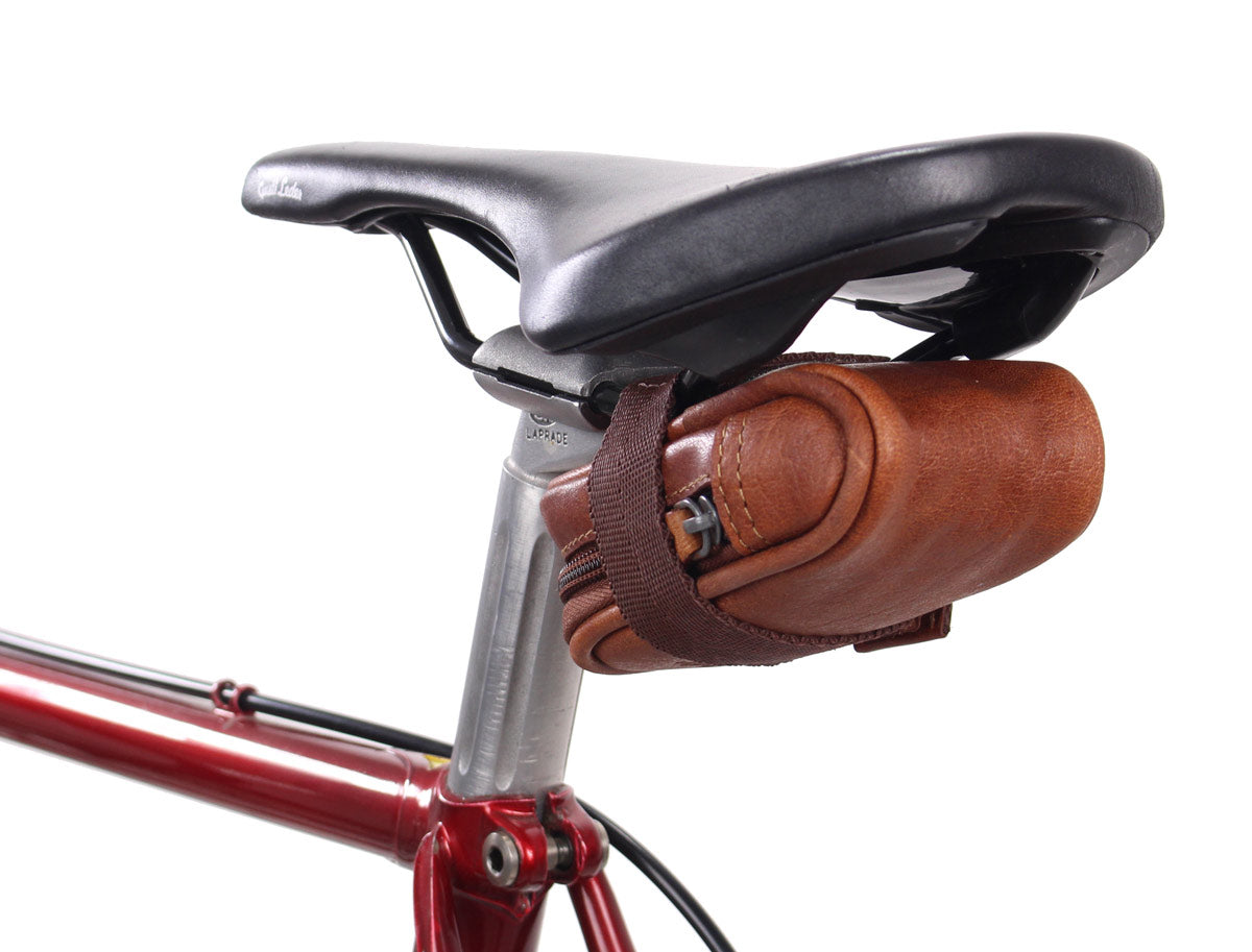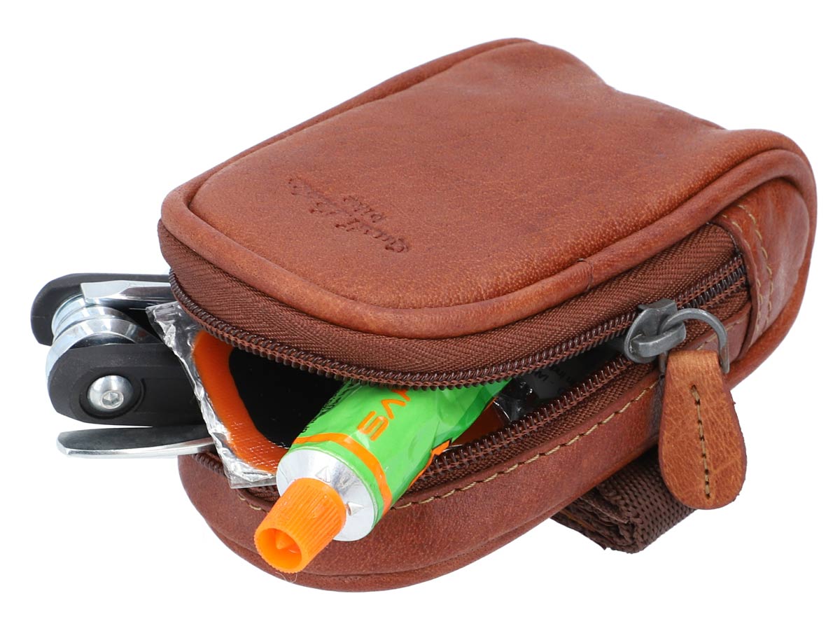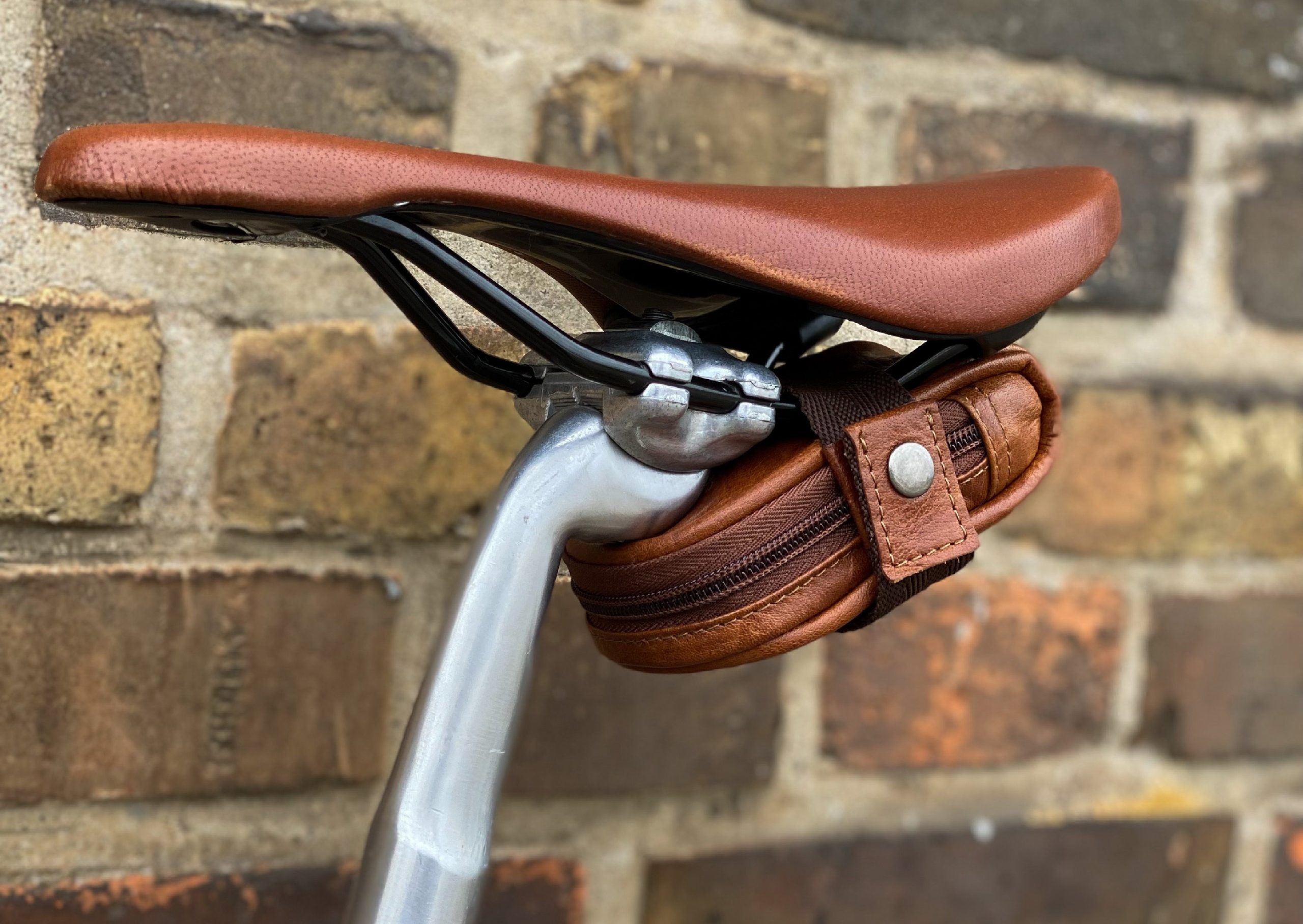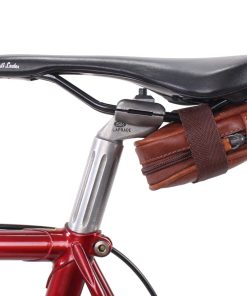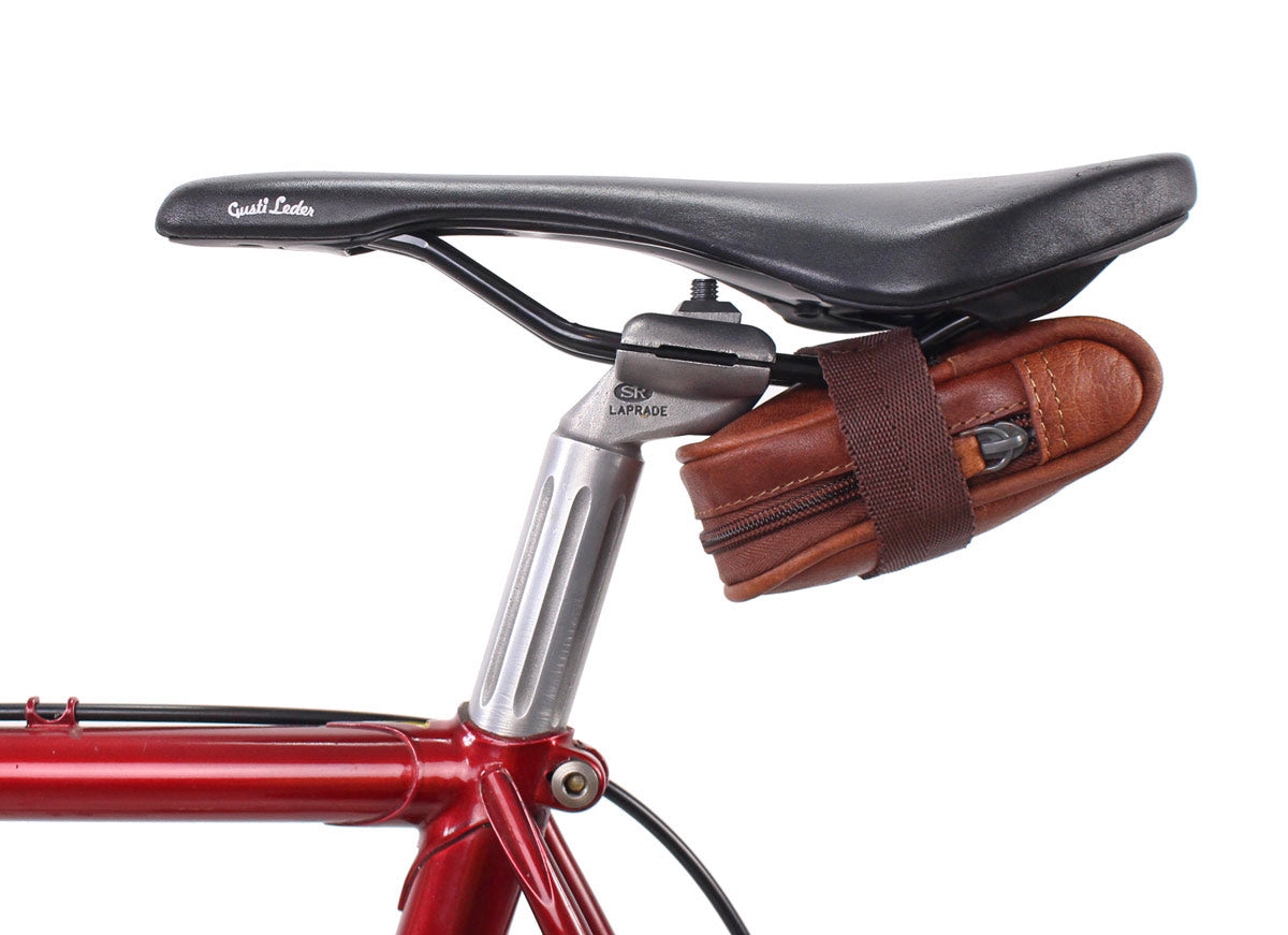 Thanks to the zipper, your items remain safe and dry. The bag is stably fixed under the saddle with a canvas strap with a snap button, so it does not slip during the ride. Whether for everyday use or long tours – „Udo B.“ is your reliable companion.